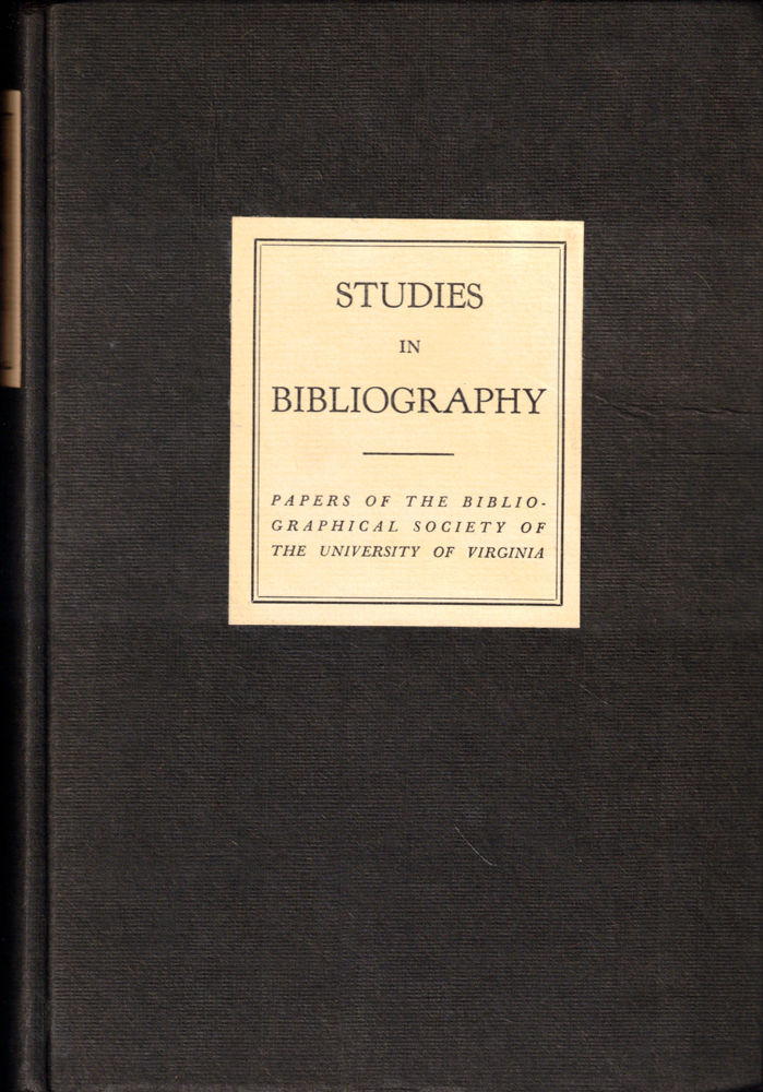 Charlottesville: Bibliographical Society of the University of Virginia, 1960. Hardcover. Very good. Hardcover. 290pp. Very good in publisher's black cloth boards with paper labels.