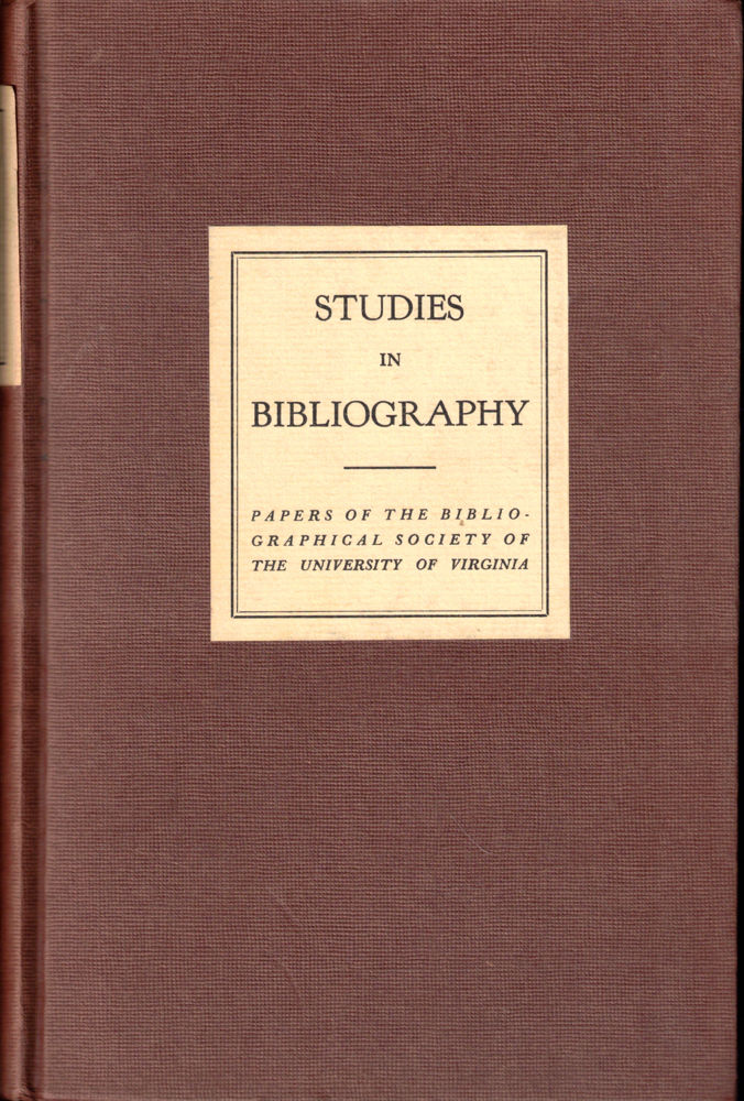 Charlottesville: Bibliographical Society of the University of Virginia, 1966. Hardcover. Very good. Hardcover. 282pp. Very good in publisher's brown cloth boards with paper labels.
