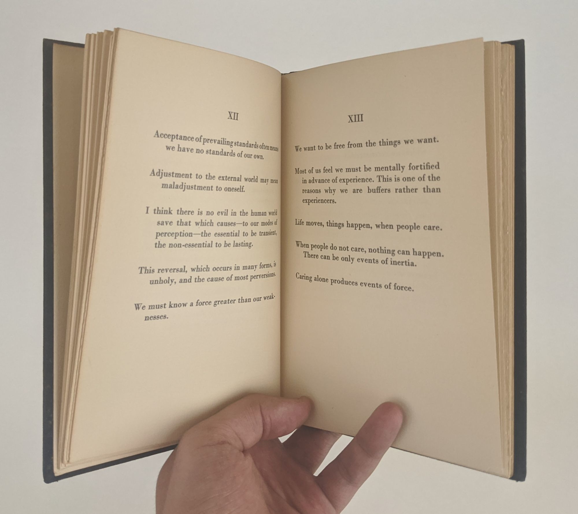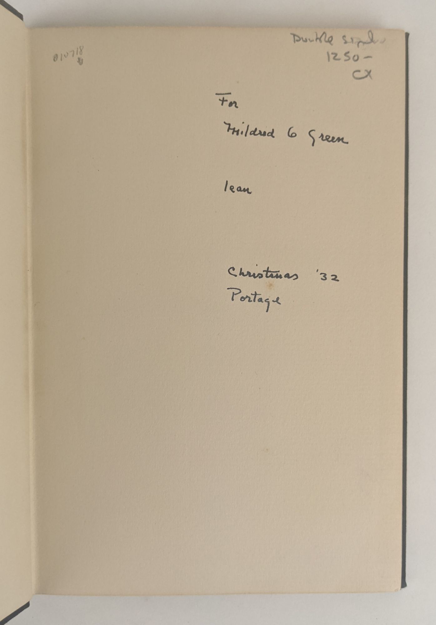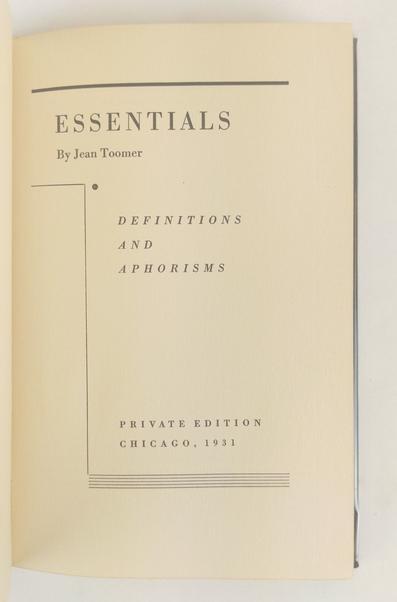 Chicago: Private Edition, 1931. Limited Edition, #481/1000. Hardcover. 12mo., unpaginated. In Very Good condition. Bound in publisher's black cloth, with teal and blue paper labels to spine and front cover, and teal and blue titling. Signed flat on the limitation page by Toomer, #481/1000; also inscribed by Toomer on the front free endpaper to Mildred G Green, Christmas '32. CX Consignment. Shelved in Case 0. Inscribed to Mildred G. Green, the aunt of Margery Latimer Toomer (Jean Toomer's wife). 1346491. Shelved Dupont Bookstore.