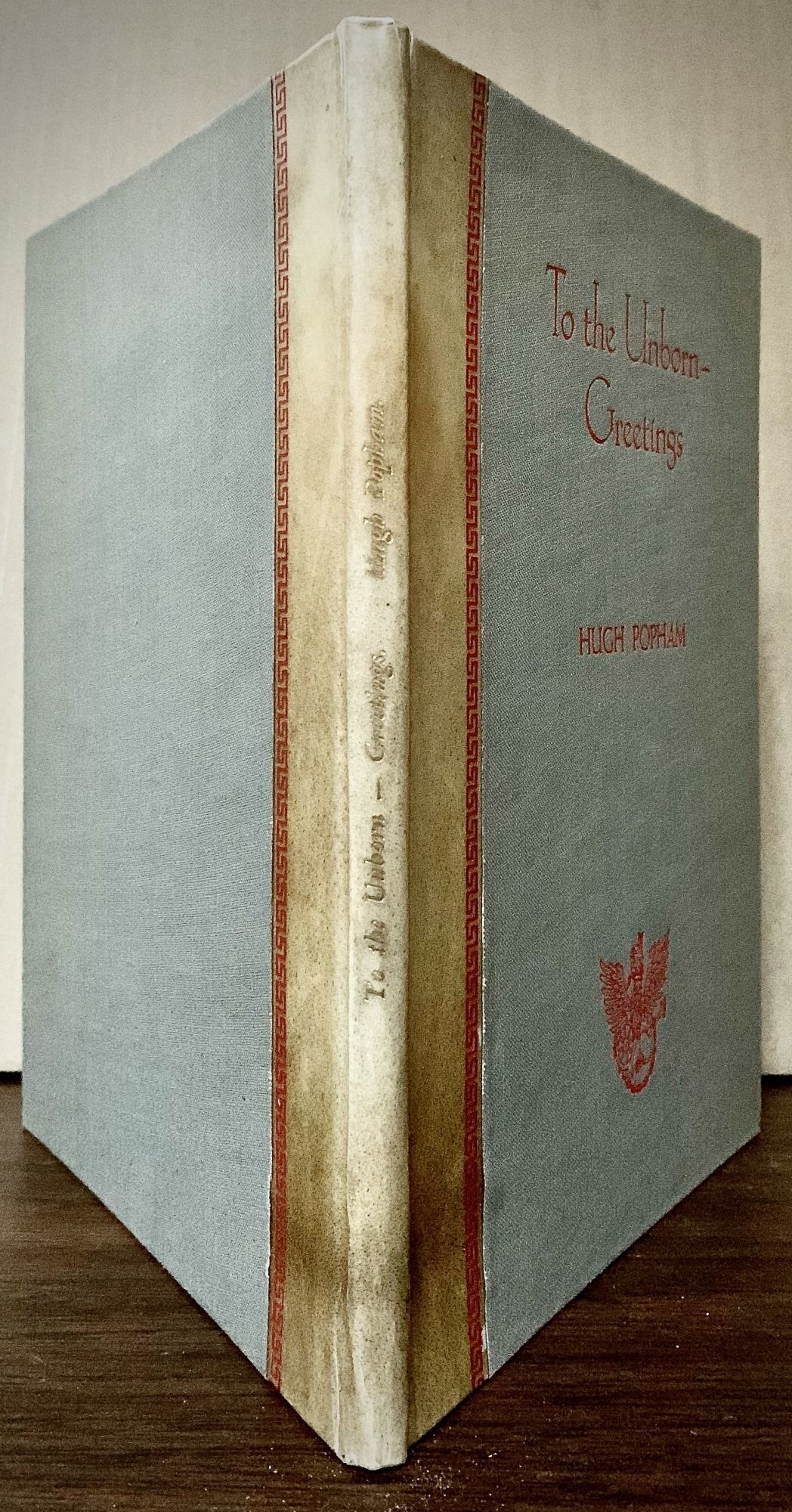 London: Dropmore Press, 1946. First edition. Hardcover. Quarter vellum and gray boards lettered in red. Very good. Unpaginated. 10 leaves. 22.5 x 17.5 cm. Limited edition, copy 65 of 81 signed by Popham on J. Whatman hand made paper, watermarked 1852. From his obituary: "Perhaps the only British poet of stature to reflect the experience of young flyers in the Second World War." Title page in red and black. Spine toned toward lower half.