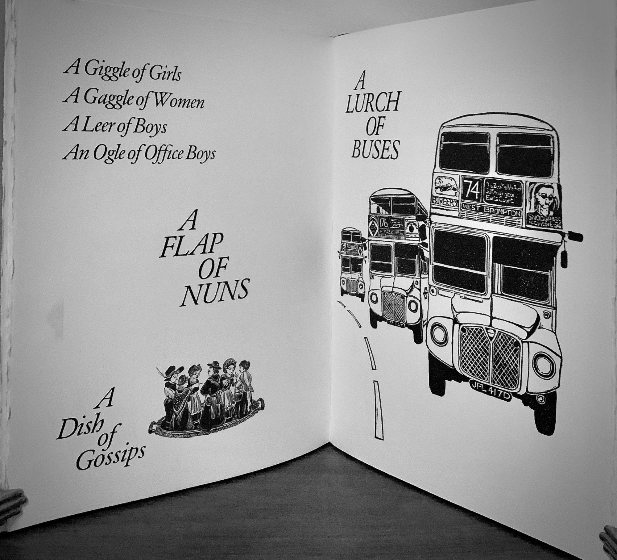 Brighton: Beehive Press, 1981. First edition. Hardcover. Publisher's half brown morocco spine and matching thick brown boards lettered in gilt. Fine. Unpaginated. Seven leaves. 38 x 28.5 cm. Limited edition, copy 7 of 30 signed by Jane Launchberry. Images are black and white lithographs printed on cream 12 cartridge Somerset paper. In lay terms, very heavy, thick paper.
