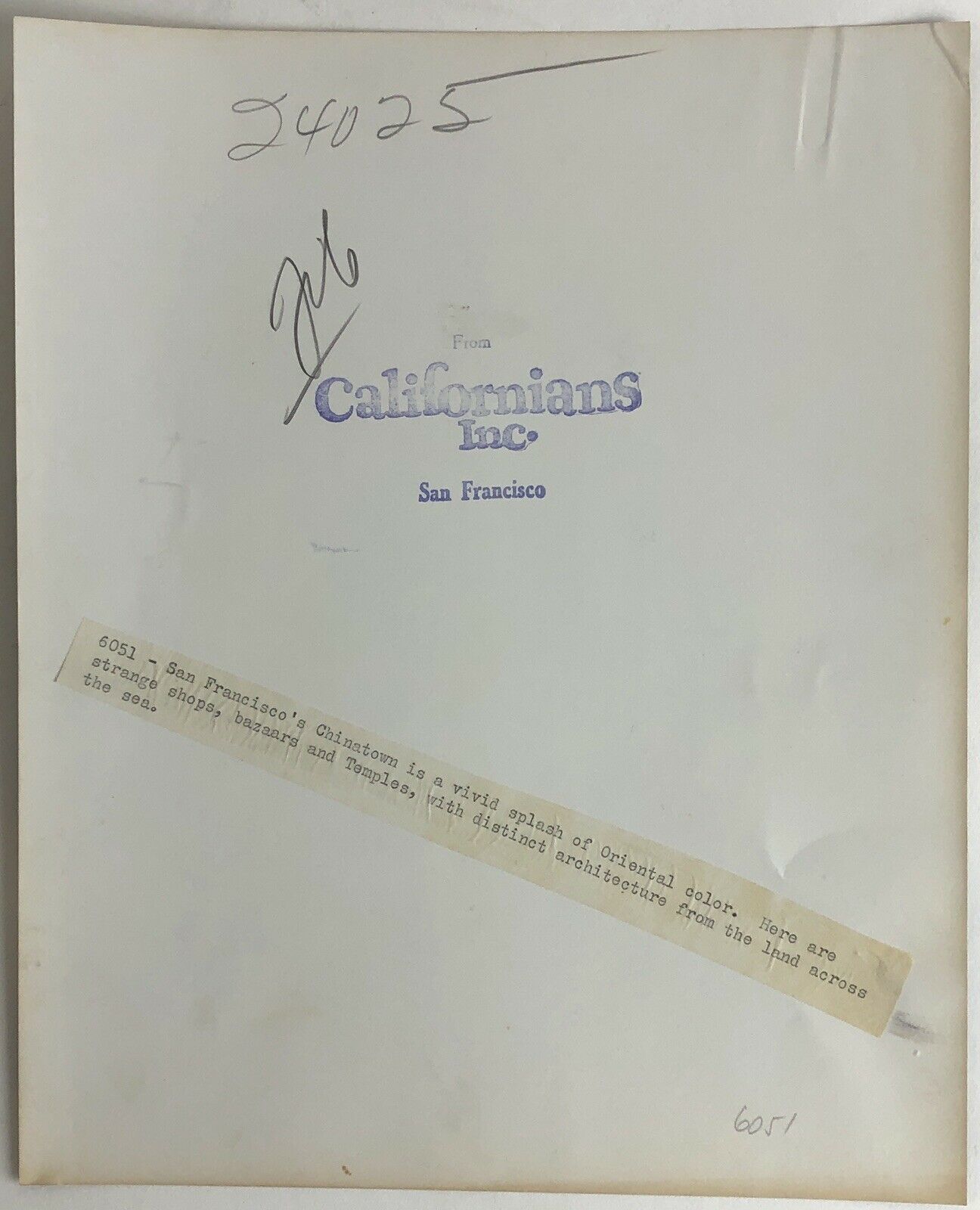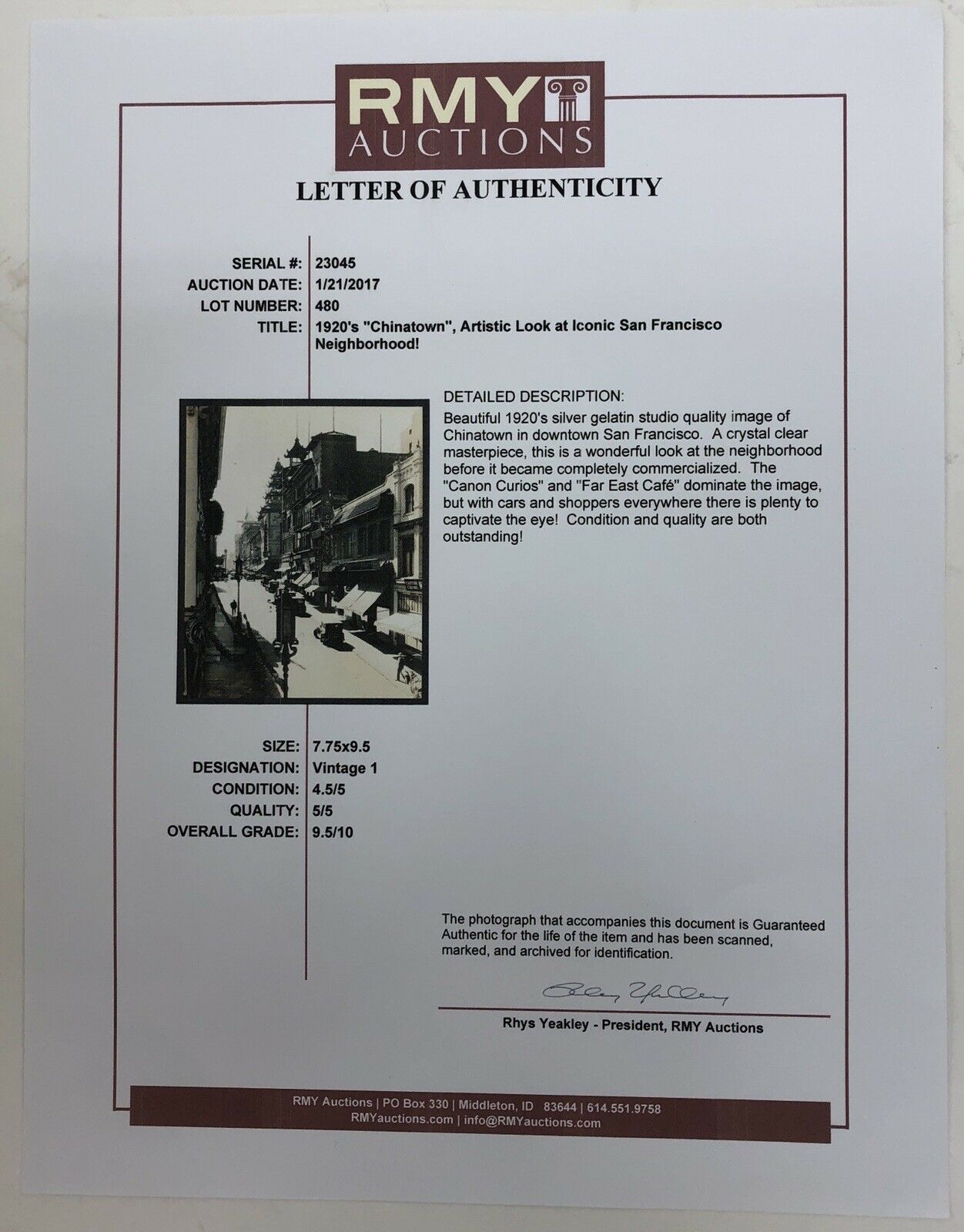 Beautiful 1920's silver gelatin studio quality image of Chinatown in downtown San Francisco. A crystal clear masterpiece, this is a wonderful look at the neighborhood before it became completely commercialized..."