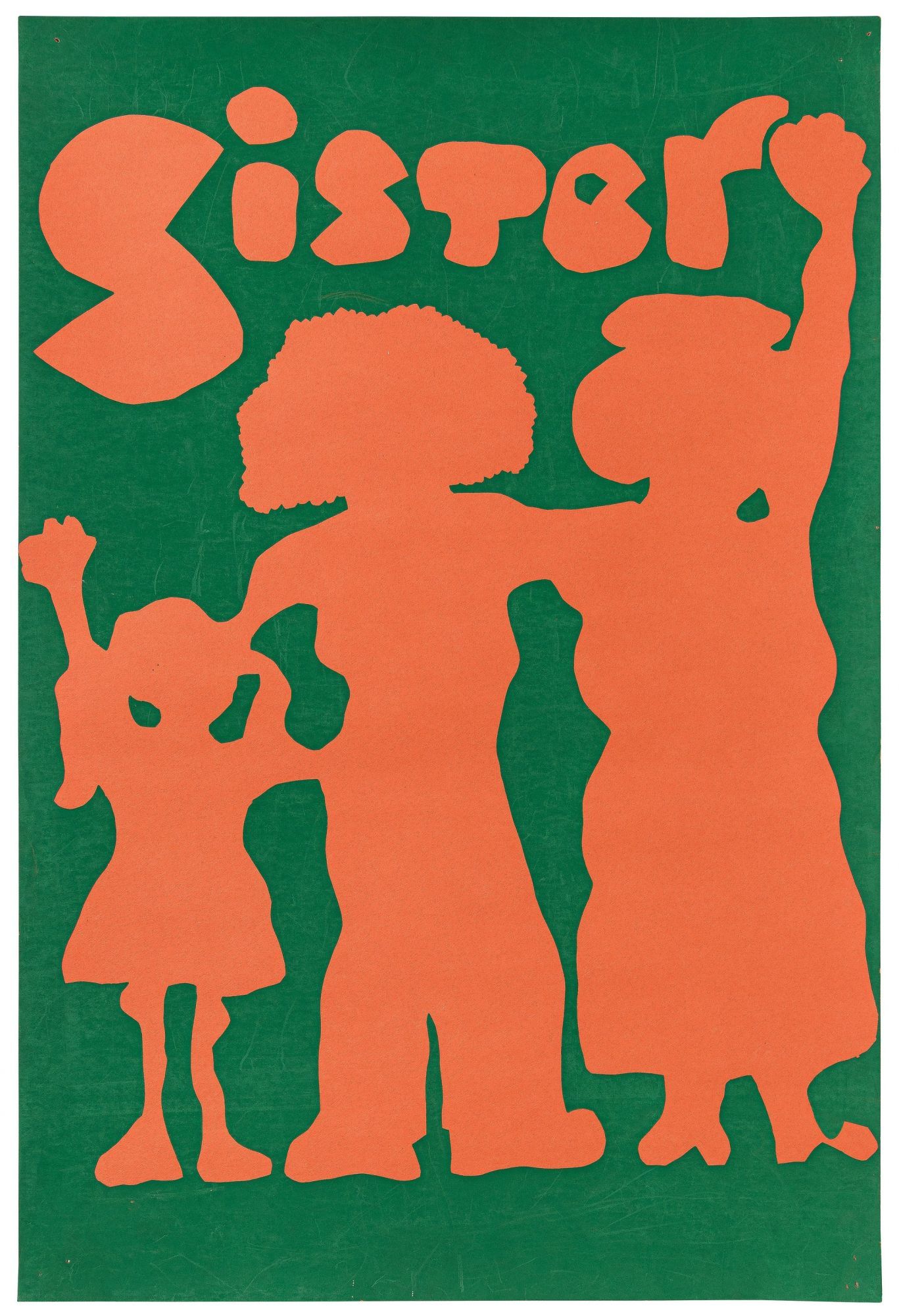 [No place: no publisher, 1973. Unbound. Near Fine. Silkscreen poster. Measuring 13½" x 20". Captioned “Sister” with the raised fist of one of the people pictured forming an exclamation point. Printed in green on orange stock. Neither signed by the artist or providing any publication information. The name “Jennifer” is handwritten on the verso. Slight rubbing, near fine. Three generations of women are depicted in silhouette standing with their arms around each other, two with raised fists. A simple but direct image displaying feminine camaraderie certainly inspired by the Women’s Liberation Movement.