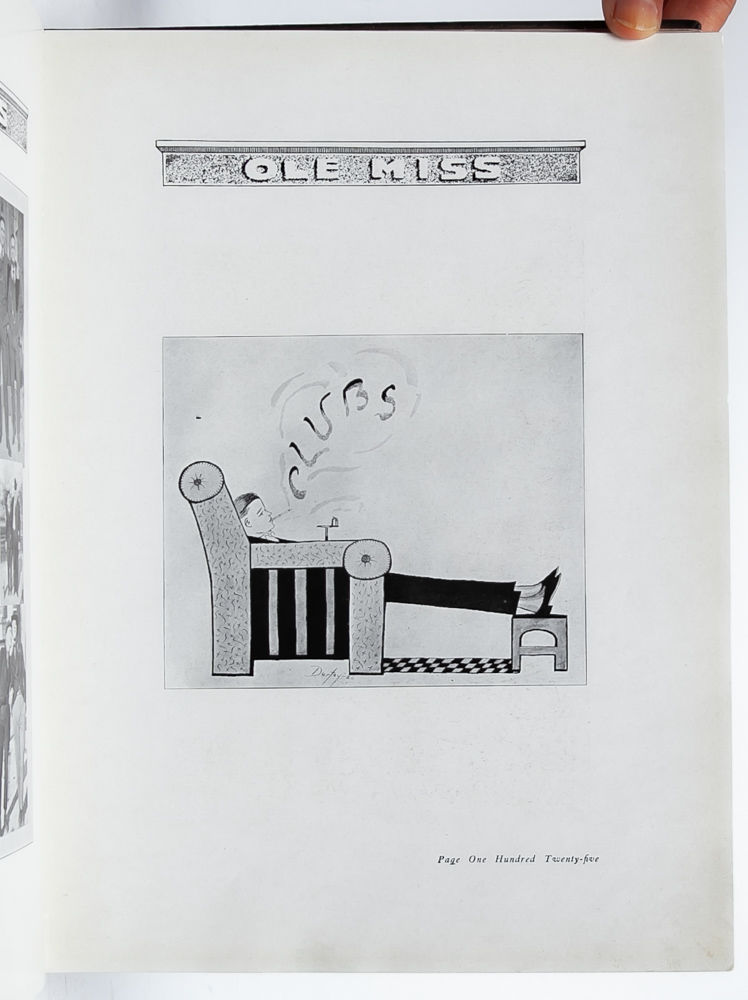 In addition to Faulkner's verse, the yearbook allows a glimpse into his active campus life. He contributes drawings that appear on pages 20, 105, 145, 155, and 157. He appears in the membership photographs for the Ole Miss staff and with the local American Legion post. Under the name Count William Falkner [sic] his name is listed in the membership of the Freshman Literary Class as well as under William Faulkner as a Special Student.