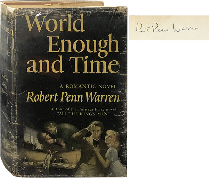New York: Random House, 1950. Book Club Edition. Hardcover. Very Good/Good. Signed by Warren on the front endpaper. Very Good in a Good jacket, clipped at the top and bottom corners, rubbed with color loss at the top edge, a few small chips. Brown buckram, some scars and scratches, with a black ink panel with gilt lettering on the spine. Square and firmly bound with a top stain, rear hinge starting, clean internally. Robert Penn Warren's 19th century Kentucky romance.