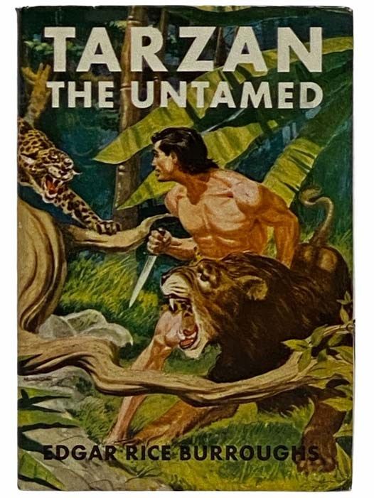 New York: Grosset & Dunlap, 1922. Reissue. Hard Cover. Very Good/Very Good. 0x0x0. Monroe, Edmund; Palacios, Rafael. 1948-9 printing (Heins TU-4, Lukes TU-BBG-1b in jacket variant 3b). Single tape repair on reverse jacket edge, stationery shop sticker on rear endpaper. 1922 Hard Cover. v, [3], 309 pp. 8vo. Pink tweed boards, black titles. Jacket art by Edmund Monroe, cover art and endpapers by Rafael Palacios. The eighth in the Tarzan series, originally serialized as two separate stories (Tarzan and the Huns & Tarzan and the Valley of Luna) in Redbook and All-Story Weekly. "A vengeful Tarzan unleashes his jungle cunning against the Germans in Africa during World War I.