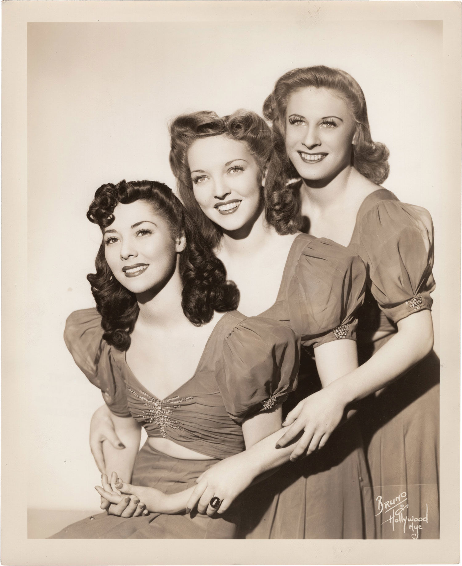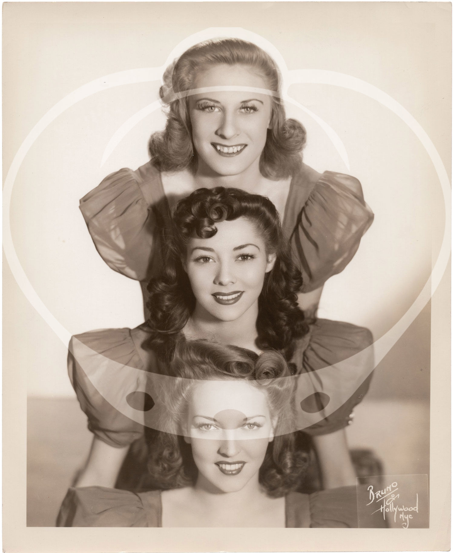 N.p.: N.p., 1940. Two vintage photographs of all-girl dance and vaudeville group The Biltmorettes, circa 1940s. With the insignia of Bruno Bernard, also known as Bruno of Hollywood, to the bottom right corners of the rectos, and Bernard's corresponding stamp to the verso.