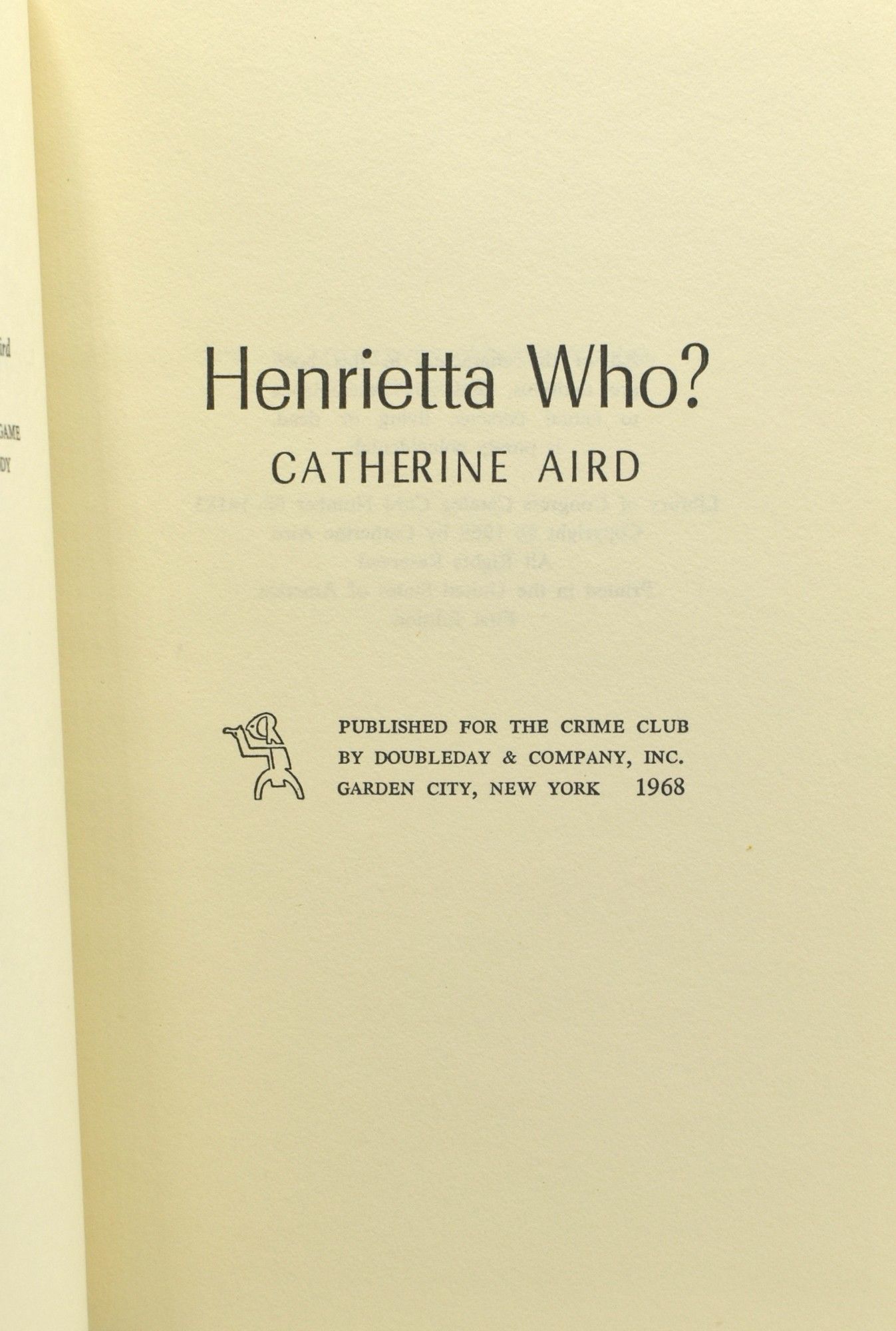 Garden City: Crime Club | Doubleday & Company, 1968. First Edition. Hard Cover. Very Good binding/Very Good dust jacket. Signed. 8vo.; in the publisher's black cloth binding, with dustjacket; [8], 9-188 pages; there are no ownership of other marks in the book; tipped in is a previous owner bookplate which has been Signed by Catherine Aird.~~Overall a nice copy of Ms. Aird's third mystery novel, following The Religious Body in 1966 and A Most Contagious Game in 1967. The dustjacket shows only trivial wear and has not been price-clipped. Very Good binding / Very Good dust jacket.