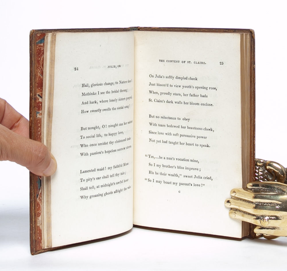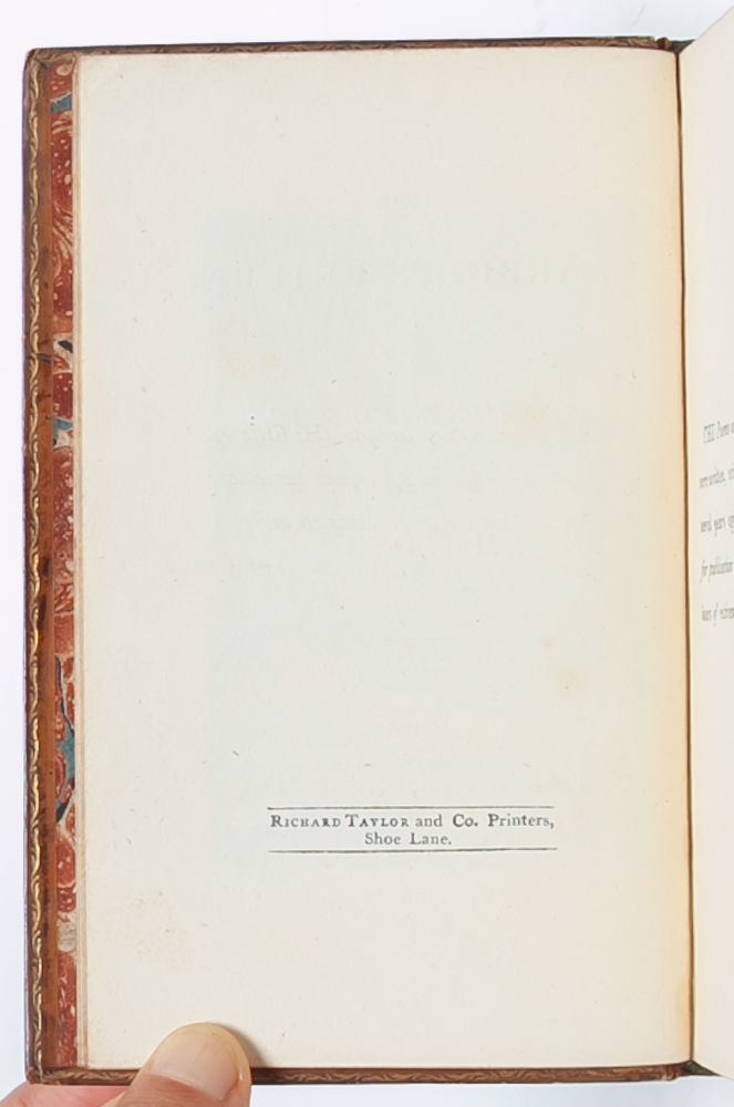 London: Longman, Hurst, Rees & Orme, 1808. First edition. Contemporary full calf with gilt and morocco to spine. All edges brightly gilt. Marbled endpapers. Some gentle rubbing and slight bowing to boards, but pleasing and tight overall. Bookplate of J. O. Edwards to front pastedown. Inoffensive foxing to preliminary and terminal leaves, with text block fresh and unmarked. Measuring 155 x 90mm and collating [6], 185, [1]: complete, including frontis. The first of two editions released in the same year, and preceding the American first edition, it is scarce institutionally and in trade. One of two copies currently on the market, OCLC reports only 5 institutional copies. The true first has not come to auction, with the three appearances in the modern auction record all being the U.S. printing.