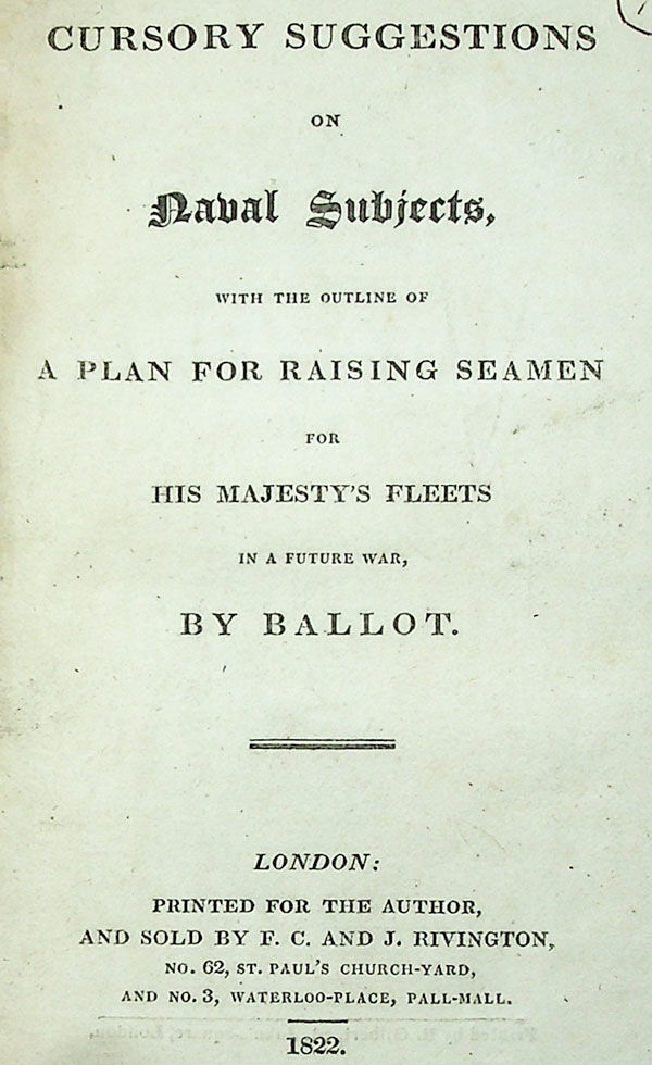 Cursory Suggestions on Naval Subjects, with the Outline of a Plan for Raising Seamen for His Majesty's Fleets in a Future War, by Ballot