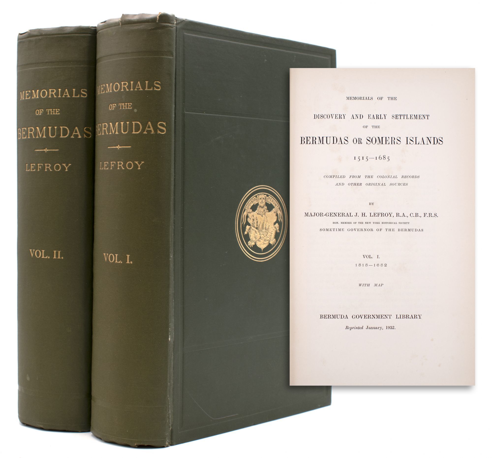 [London]: Bermuda Government Library, 1932. Large folding map and other maps and plates. 2 vols. Large 8vo. Original green cloth gilt. Very good. Large folding map and other maps and plates. 2 vols. Large 8vo.