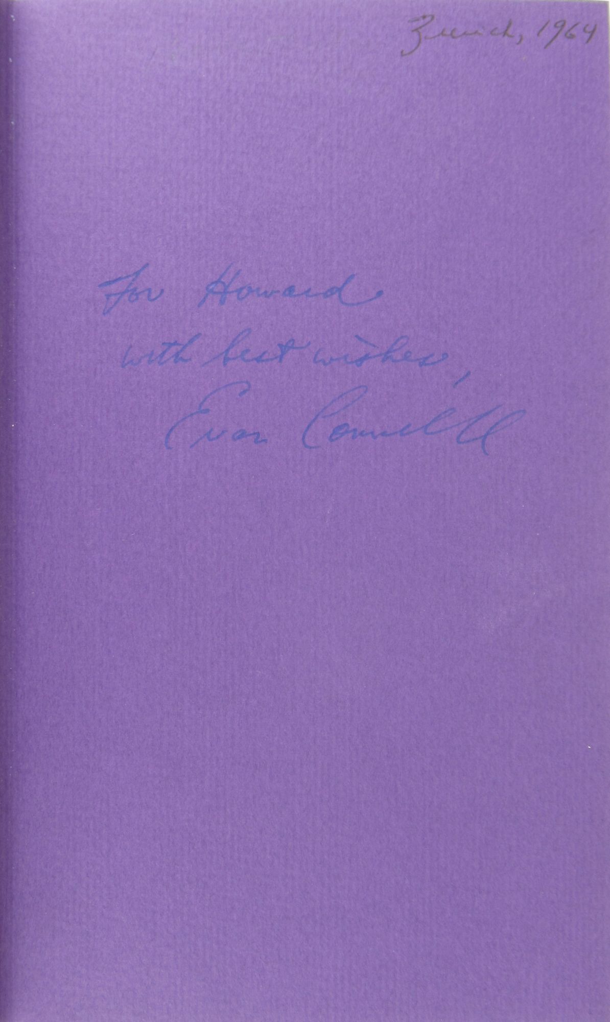 New York: Viking Press, 1963. Very Good/Very Good. New York: Viking Press, 1963. Octavo; publisher's cloth in teal and white pictorial price-clipped dust jacket, purple topstain; [10],243pp. Jacket extremities a bit chipped and toned, topstain unevenly sunned, corners bumped, else Very Good, internally clean and sound. Inscribed and signed by the author on front free endpaper to Howard Lind Nelson, with Nelson's pictorial ex libris mounted to front pastedown.