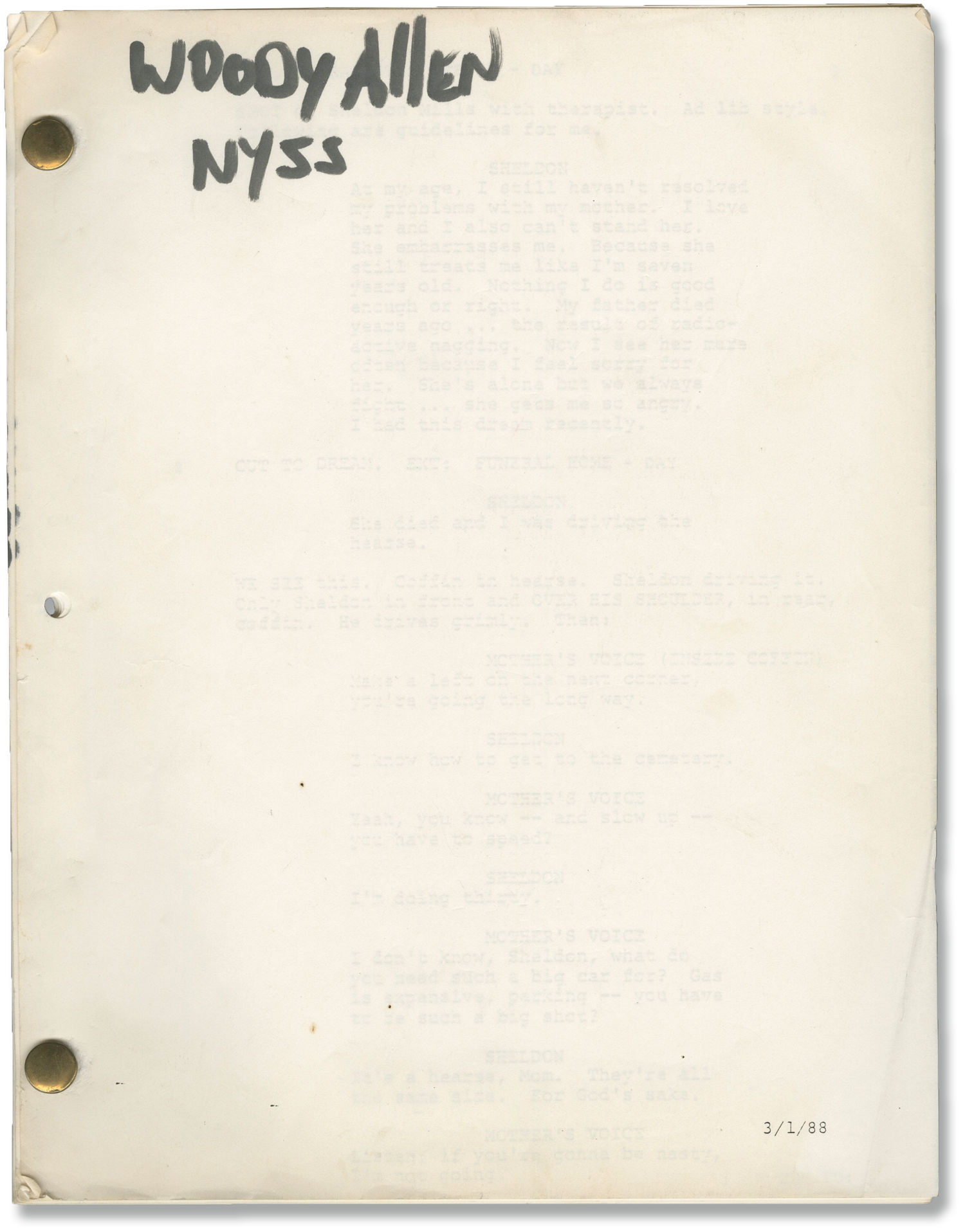 New York Stories: Oedipus Wrecks (Original screenplay for the third segment of the 1989 anthology film, copy belonging to Woody Allen)