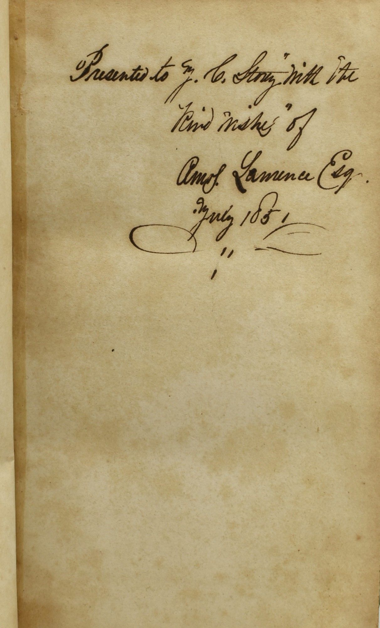 New York: Collins, Brother & Co, 1845. First Edition. Quarter Leather. Good binding. 12 mo.; 1/4 calf over printed paper-covered boards; xi, 182 pages, followed by [6] pages of publisher's ads; the worn spine is patched and crumbling but holding; hinges reinforced with japanese tissue.~~There is a previous owner gift inscription dated July 1851 from Amos Lawrence, the Boston philanthropist, social activist and abolitionist. James McPherson, in Battle Cry of Freedom, says of Lawrence that he was radicalized by the Anthony Burns affair in spring, 1854, and quotes him as saying: "We went to be one night old fashioned, conservative, Compromise Union Whigs and woke up stark mad Abolitionists."~~Uncommon, especially in this edition. (Sabin 80770 (Fourth Edition); McPherson, Battle Cry of Freedom, 1989, p.). Good binding.