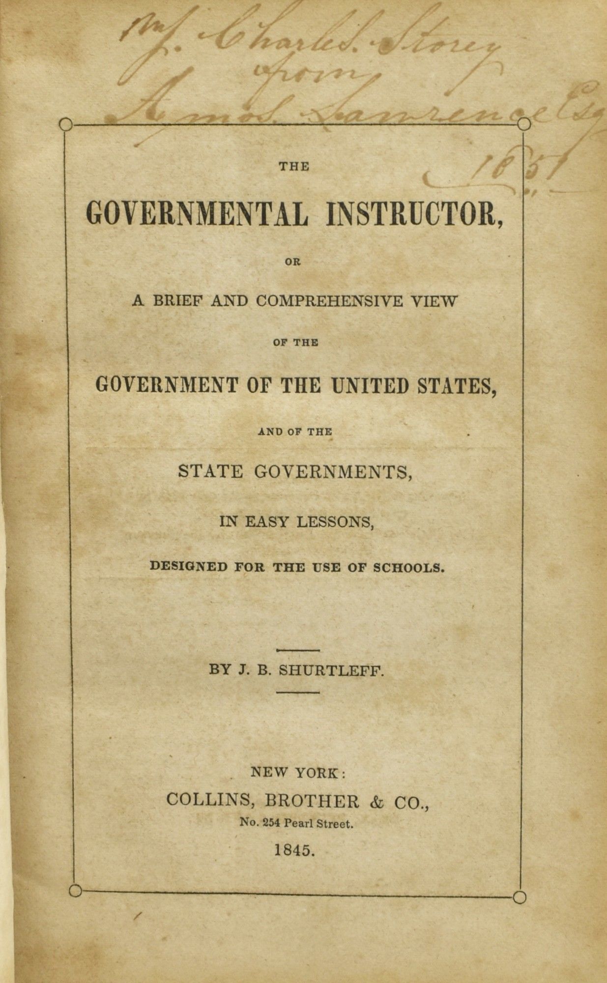 [AMERICANA] [GOVERNMENT] [SCHOOLS] THE GOVERNMENTAL INSTRUCTOR, OR A BRIEF AND COMPREHENSIVE VIEW OF THE GOVERNMENT OF THE UNITED STATES, AND OF THE STATE GOVERNMENTS, IN EASY LESSONS, DESIGNED FOR THE USE OF SCHOOLS