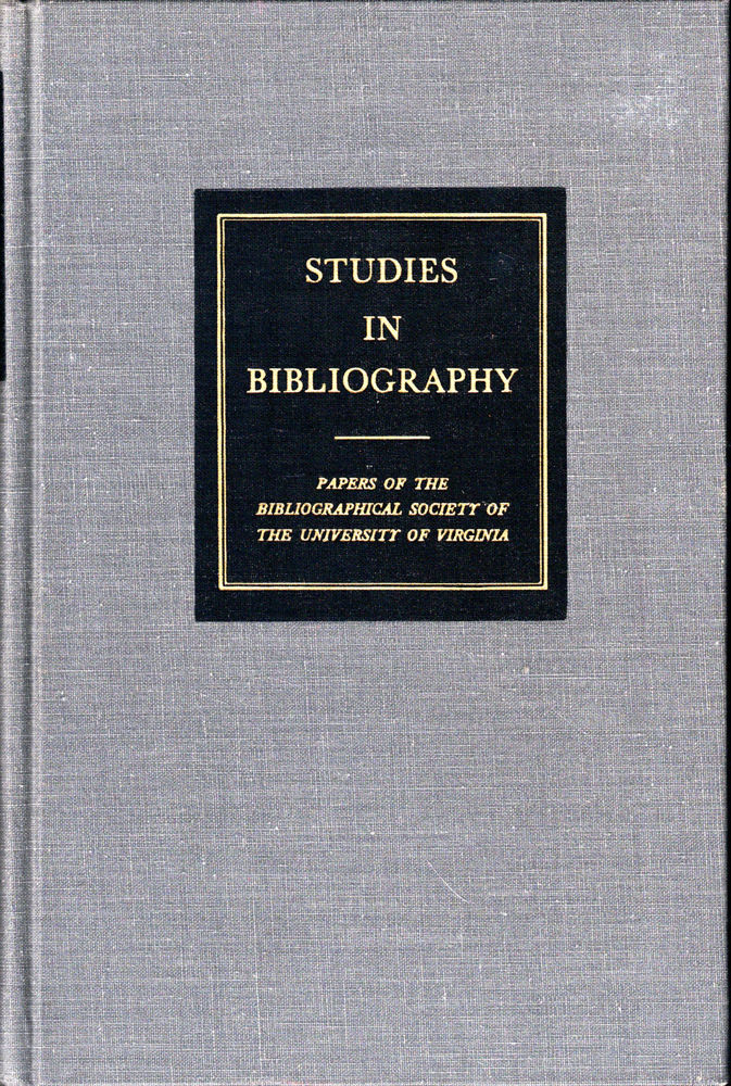 Charlottesville: Bibliographical Society of the University of Virginia, 1980. Hardcover. Very good. Hardcover. 282pp. Very good hardback bound in publisher's gray cloth and issued without a jacket.