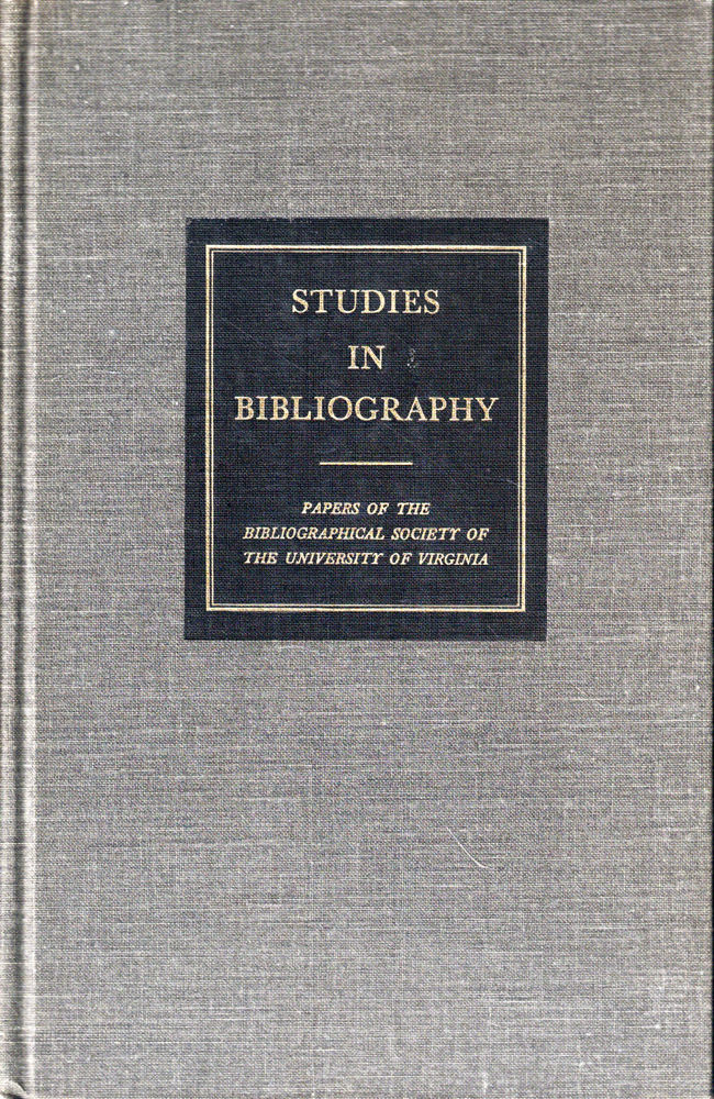 Charlottesville: Bibliographical Society of the University of Virginia, 1967. Hardcover. Very good. Hardcover. 298pp. Very good hardback bound in publisher's gray cloth and issued without a jacket.