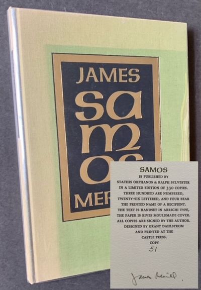 Los Angeles: Sylvester & Orphanos, 1980. Cloth. Very Good +. The 1980 1st edition, #51 of 330 copies issued signed by James Merrill at the limitation. Tight and VG+ in its light-green cloth, with pronounced, even offsetting to the front panel. Deckled fore and bottom-edges, designed by Grant Dahlstrom and printed at the Castle Press.