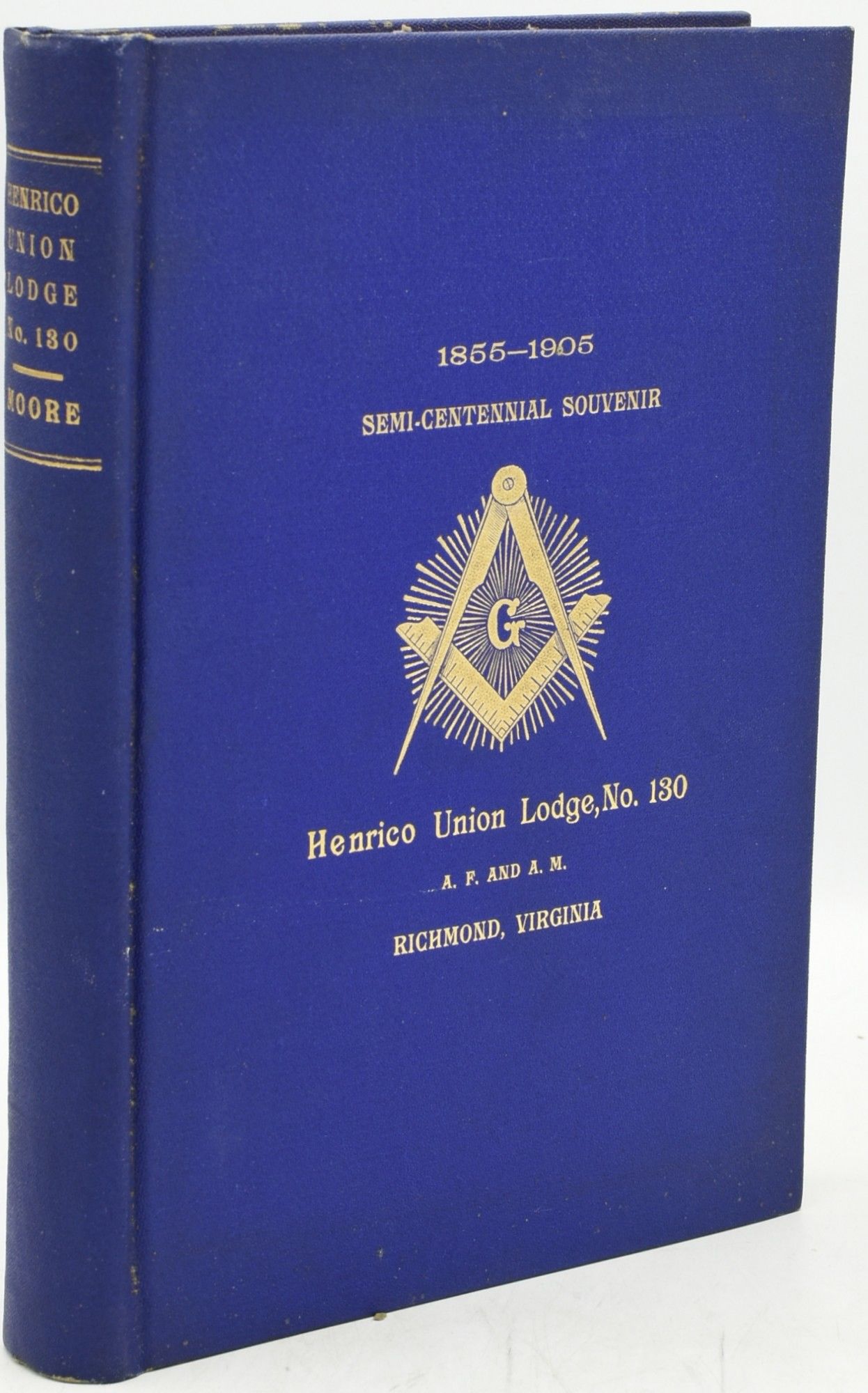 Richmond: Wm. Ellis Jones, Book and Job Printer, 1905. First Edition. Hard Cover. Near Fine binding. 8vo.; in the publisher's blue cloth binding, with decoration and titling in gilt; 179 pages, including the Index, with halftone frontispiece of "The Lodge Building" and with additional illustrations; there are no marks of any kind in the book.~~A "brief" history of the Lodge (179 pages) compiled to celebrate its Fiftieth Anniversary. Author J. Staunton Moore trusts that "this little volume may be a pleasant souvenir to hand down from sire to son" [p. 6]. Near Fine binding.