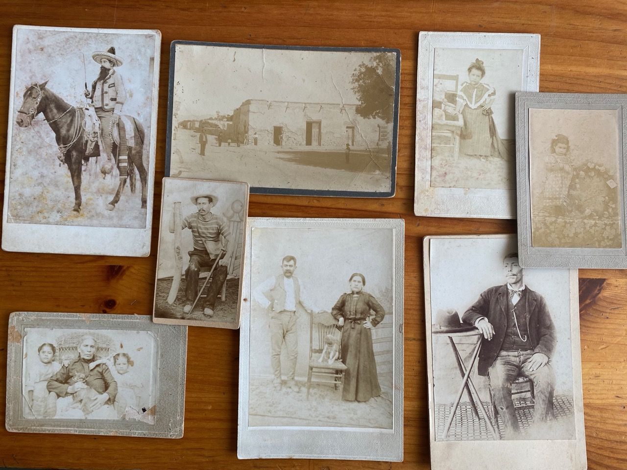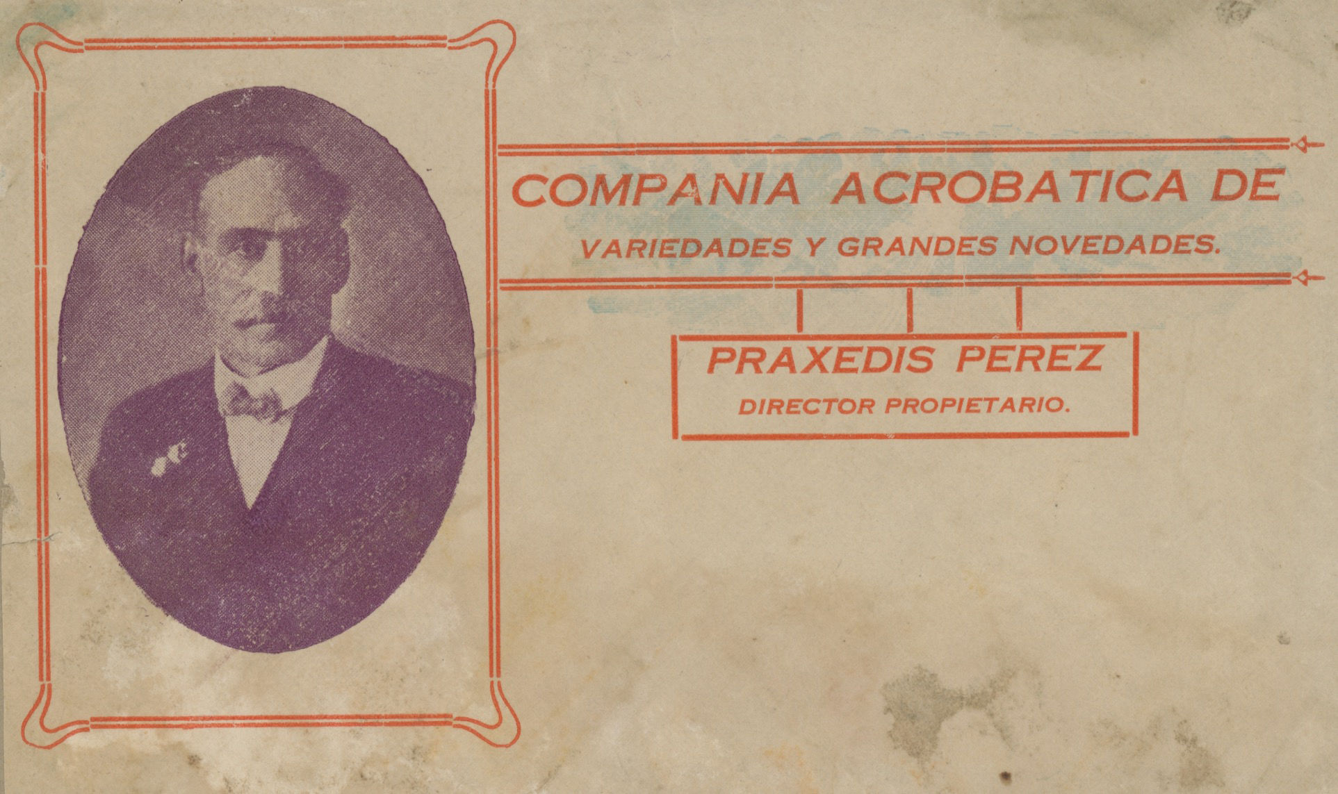 Chihuahua, 1905. Albumen photographs most measuring 4 x 6 and smaller. Photographs faded and with wear, some stray marks and scuffs to versos, good condition overall. Good. We find scant information about Circo Perez, a traveling circus in Chihuahua at the turn of the century. The circus was directed by Praxedis Perez and appeared to be largely a family affair. The present collection includes three overtly circus-related cabinet cards: an outdoor scene of the circus tent with a crowd of spectators looking at the camera, the verso bearing the note “Circus Perez, Chihuahua, 1898”; an advertisement for the troupe, Compania Acrobatica de Variedades y Grandes Novedades, with a portrait of the director Praxedis Perez; and a cabinet card portrait of a girl in costume. The other photographs appear to be a mix of gifts from grateful patrons and unidentified photographs, likely family members. Two photographs relate to a Capitan Manuel Villordo, both dated in Chihuahua in 1900, one showing the man on a horseback in military attire, the other a gift from a Caciano Perez. Another photograph shows an older woman with two children beside her, with the verso identifying her as Prudencia Perez. Overall an evocative if somewhat mysterious group, worthy of further research for scholars of Mexican performance.