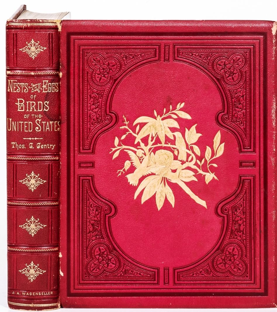 Philadelphia: J. A. Wagenseller, 1882. First Edition. Hardcover. Fine, bright copy in a lovely binding with only a few minor rubs. Quarto (8-1/2" x 11-1/2") bound in publisher's full gilt-decorated red morocco leather with silk endpapers, gilt dentelles, all edges gilt. Illustrated with a detailed chromolithographic title page and 54 gorgeous chromolithographs of birds and their nests with eggs, all protected with tissue guards. Bennett (p. 44): "Drawings done chiefly by Mr. Edwin Sheppard of the Academy of Natural Sciences of Philadelphia, acknowledged as the best ornithological artist in America." Originally issued in 25 parts.