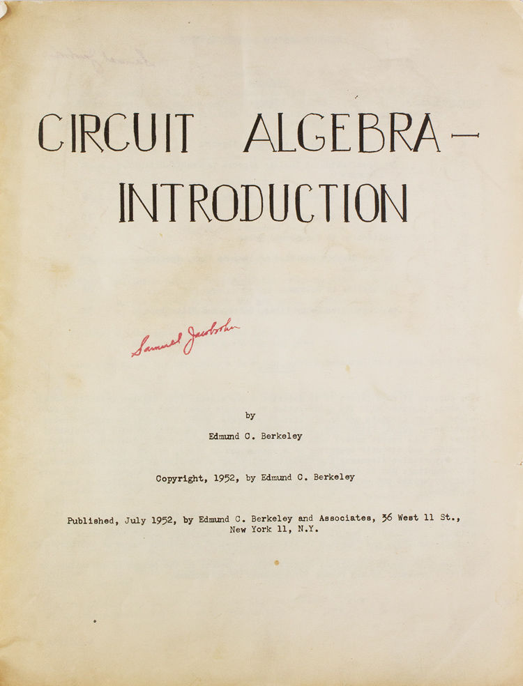 New York: Edmund C. Berkeley and Associates, 1952. First edition. 34 pp. 4to. Plain printed wrappers. Near fine. Contemporary ownership ink stamps to front cover, back cover and title page. Provenance: Ink stamp of Samuel Jacobs__; Bookplate of Erwin Tomash. First edition. 34 pp. 4to.