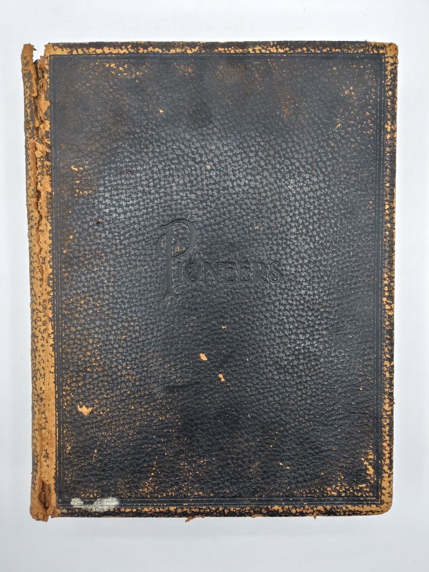 Salt Lake City, UT: Utah Pioneers Book Publishing Company, Publishers, 1913. First edition. Leather bound. Fair. 1319pp. Large quarto [31 cm] Full leather with raised bands, a gilt stamped title and designs on the backstrip, and the word "Pioneers" embossed on the front cover. Front cover detached, but present; text block cracked a couple of times and pulling away from spine; front free endpaper absent; handful of tape repairs to the preliminary pages. May require extra postage due to weight. Edition De Luxe. One of 4500 copies. Number line blank. Hundreds of biographies of early settlers of the Territory. Profusely illustrated with portraits. Flake/Draper 3182.