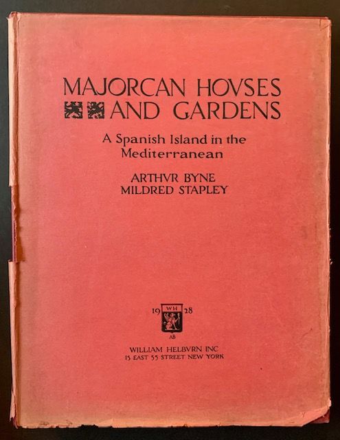 New York: William Helburn Inc, 1928. Cloth. Near Fine/Very Good. A handsome, well-preserved copy of the 1928 1st edition, WHICH INCLUDES ITS SCARCE LAVENDER DUSTJACKET. Clean and Near Fine (very light offsetting at the endsheets, very light foxing along the fore-edge) in a bright, VG example of the fragile dustjacket, with 3" of loss at the middle of the spine, mild chipping and loss to the spine ends and tips, and light wear along the flap-folds. Still though, very presentable and uncommon as such. Elephant folio, 188 full-page plates (mostly in crisp black-and-white), divided into "Majorcan Houses and Gardens" AND "Houses in the City of Palma