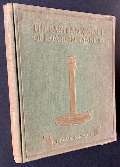 London: B.T. Batsford, 1907. Decorative Cloth. Very Good. The 1907 3rd edition, "revised and enlarged". A very presentable copy, in its light-green cloth, with bright gilt-design and titling along the front panel and spine. Light spotting to the rear panel, mild darkening along the front panel's fore-edge, light wear to the rear inner hinge. Internally, very clean, with no writing or markings to speak of. Folio, top-edge gilt, lovely pictorial pastedowns and endpapers. 262 illustrations (mostly crisp black-and-white photos) plus dozens and dozens of sketches and details. One of the great turn-of-the-century studies of "garden making