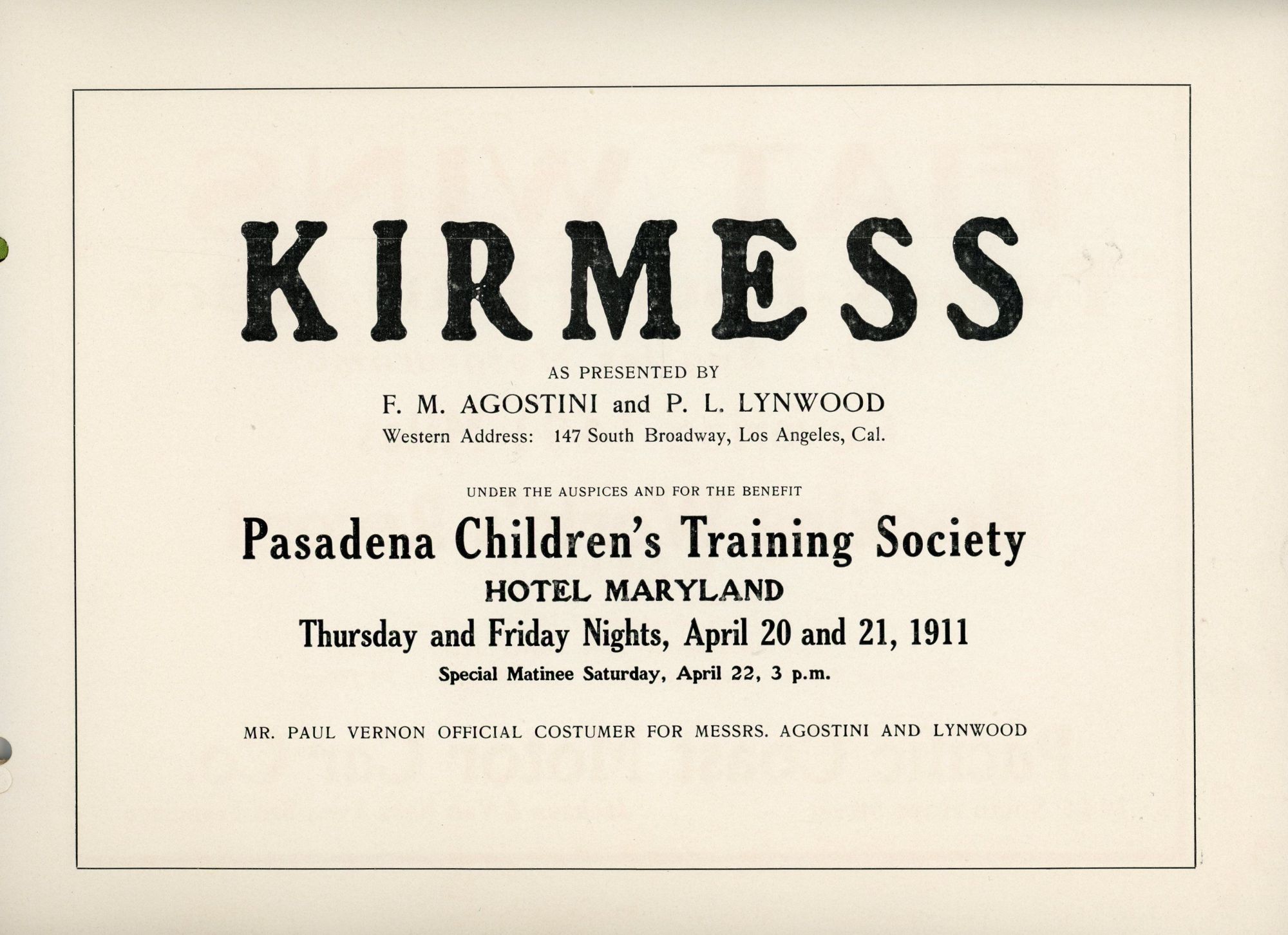 Kirmess - Souvenir Publication - Under the Auspices and for the benefit Pasadena Children's Training Society