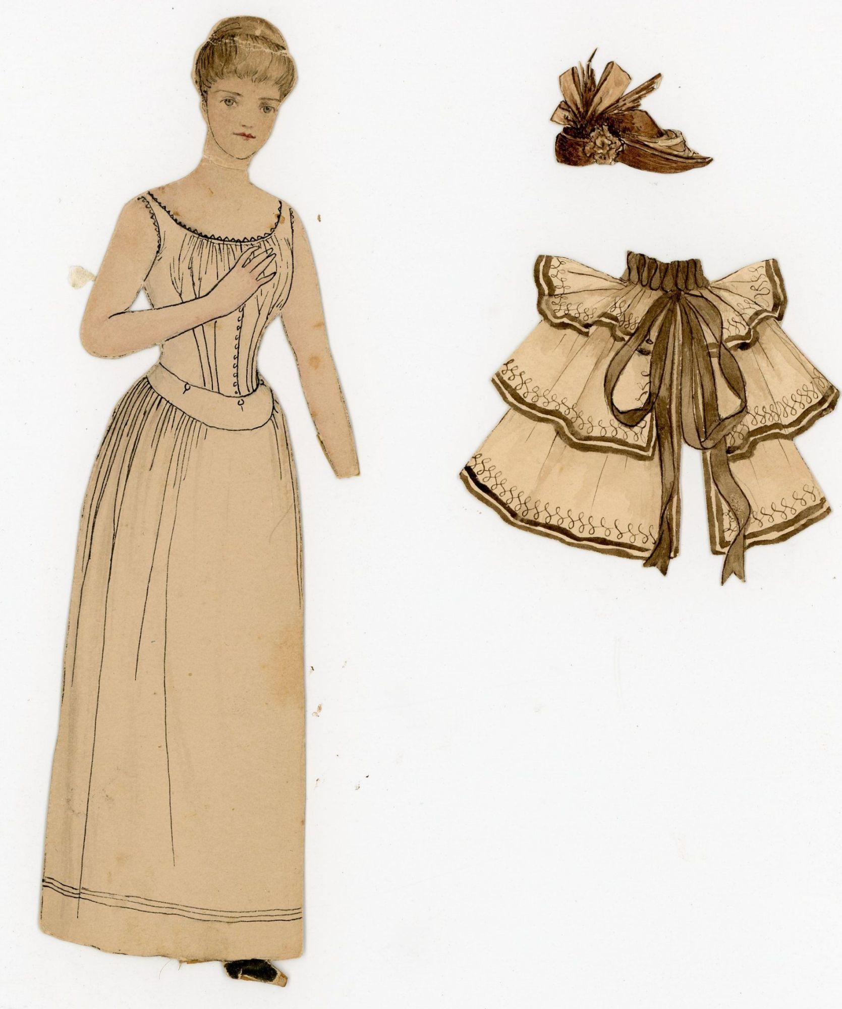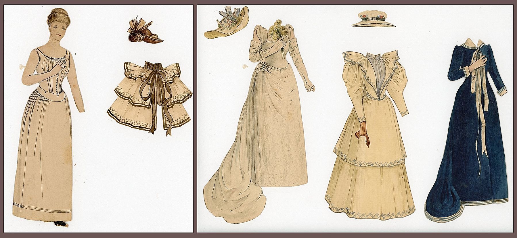 A fine hand drawn and watercolor Victorian Fine Lady Paper Doll with 3+ Costumes and Accessories