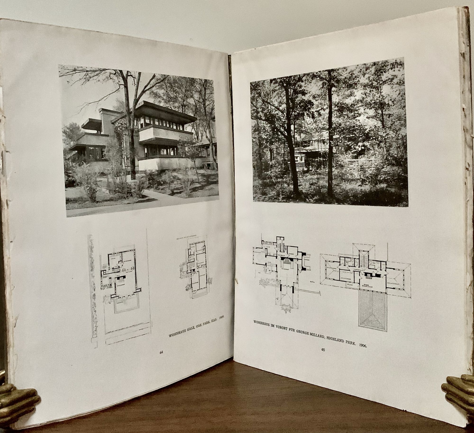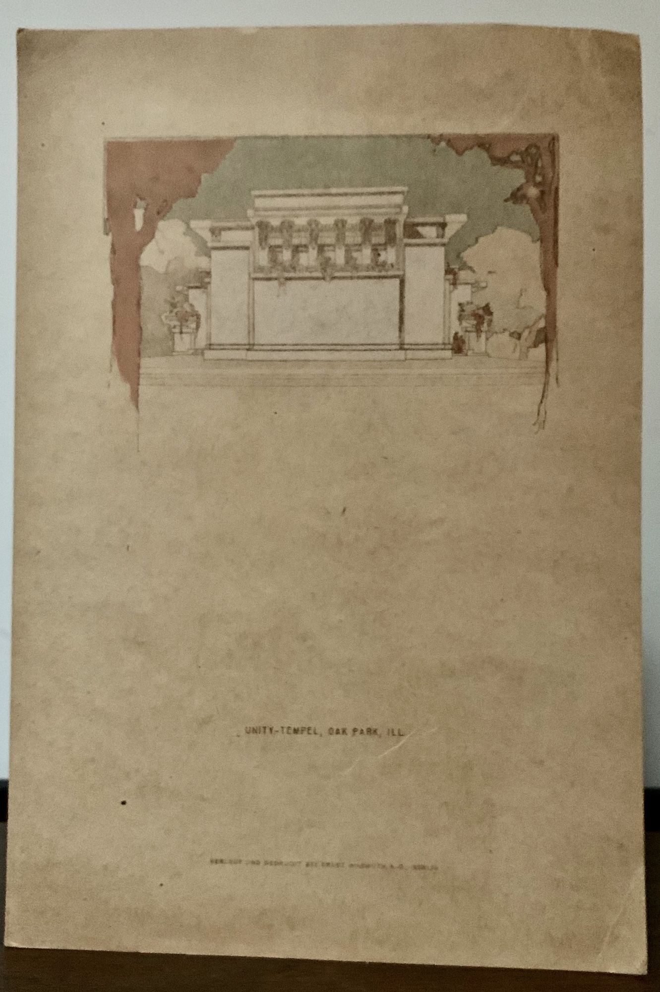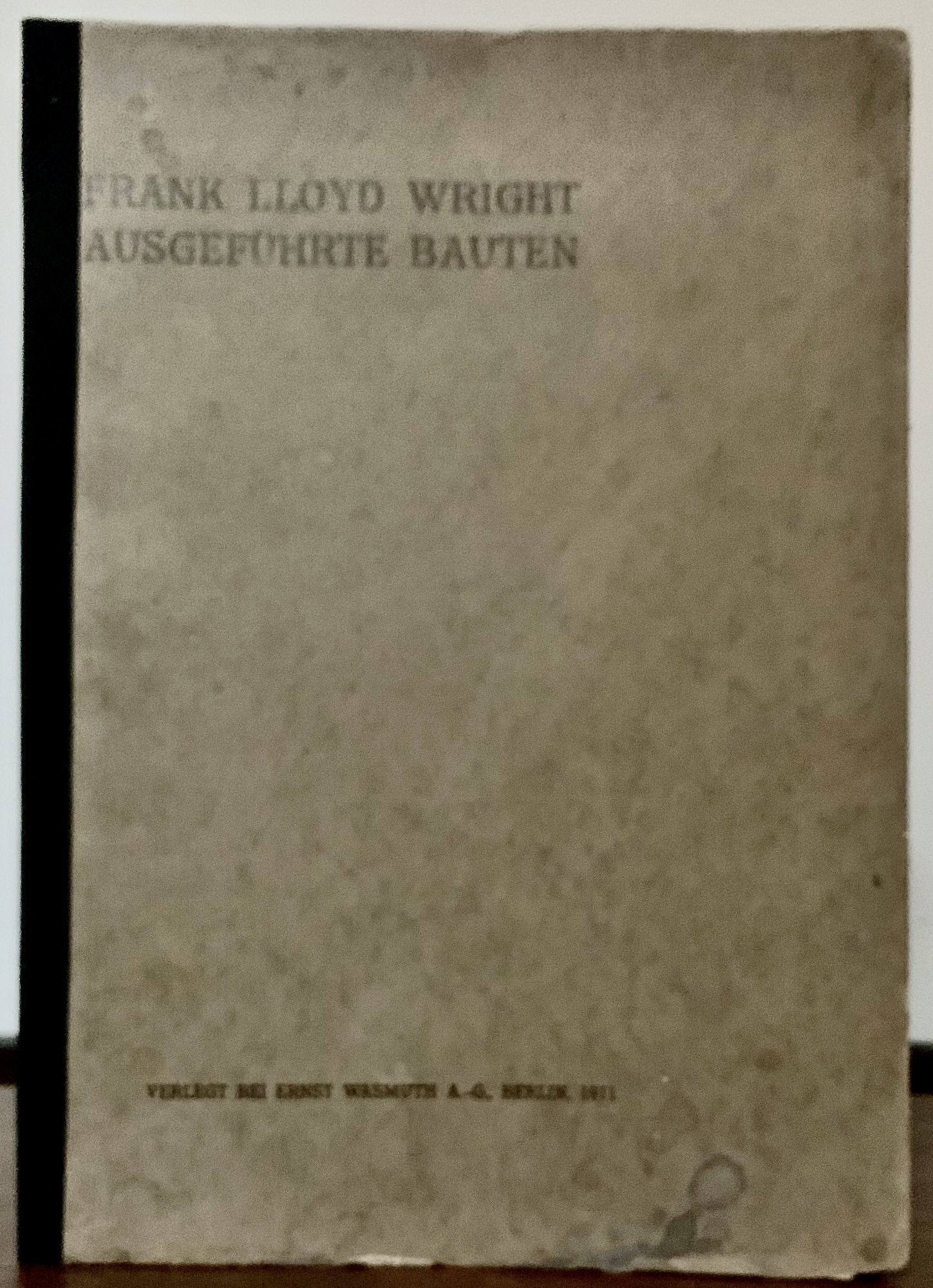 Berlin: Ernst Wasmuth, 1911. Orig. light brown wrappers, black cloth backstrip. Very good. 141 pages. 30 x 21.5 cm. Illustrated throughout from photographs; 193 half tones. Laid-in are two color plates of "Unity Temple" and a black and white photograph of Avery Coonley House, Riverside, Illinois This, the small format edition often referred to as the "Little Wasmuth," published after the Wasmuth editions of 1910 and 1911. The photographs here in were originally intended to accompany the Wasmuth portfolio. Mostly unopened, lacks title page and the C.R. Ashbee introduction. Small stain lower right cover.