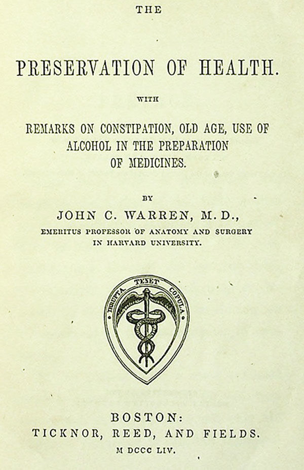 The Preservation of Health. With Remarks on Constipation, Old Age, Use of Alcohol in the Preparation of Medicines