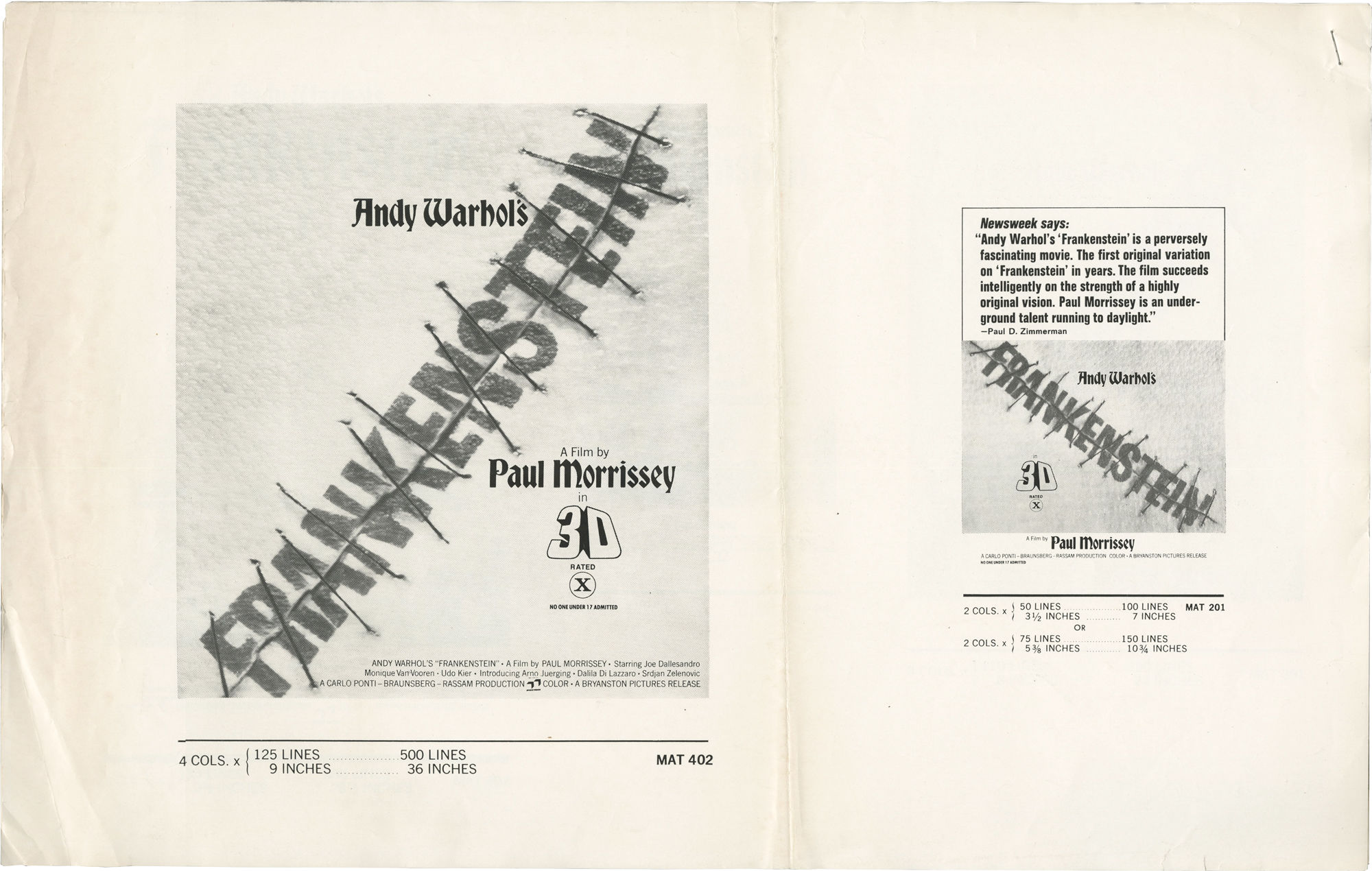 Flesh for Frankenstein [Andy Warhol's Frankenstein] (Original pressbook for the 1973 film)