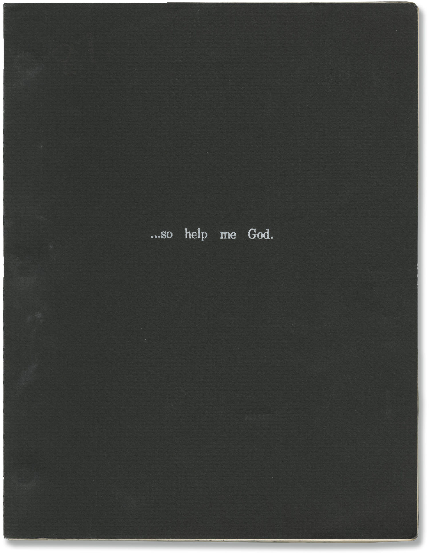 Black titled wrappers. Title page present, with credits for screenwriter William J. Cassidy. 163 leaves, with last page of text numbered 113. Mimeograph duplication, rectos only. Pages Near Fine, wrapper Very Good plus, bound internally with three gold brads.