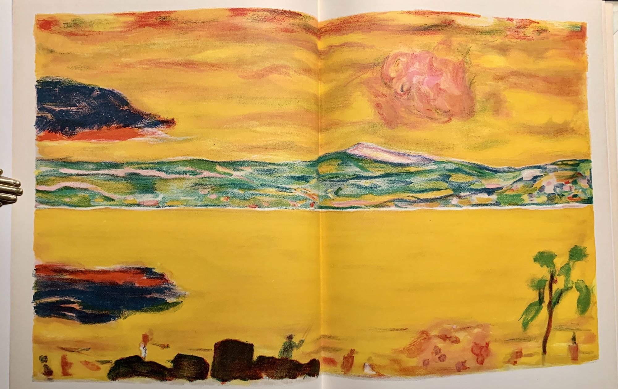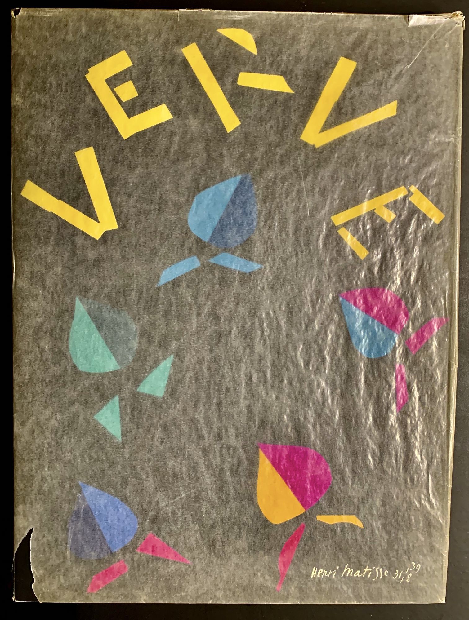 Paris: Verve, 1940. First edition. Hardcover. Orig. cover by Matisse in color with original glassine lacking a small portion front cover at lower spine. Near fine. 35 x 27 cm. No. 8 completed a few days before the occupation of Paris: original front cover colored lithography by Henri Matisse, and double-paged color lithograph by Pierre Bonnard [Sunset Over The Mediterranean], plus eleven color drawings in red by Andre Derain. "Matisse (finished) the covers of this number a say before the war broke out." Text in English.