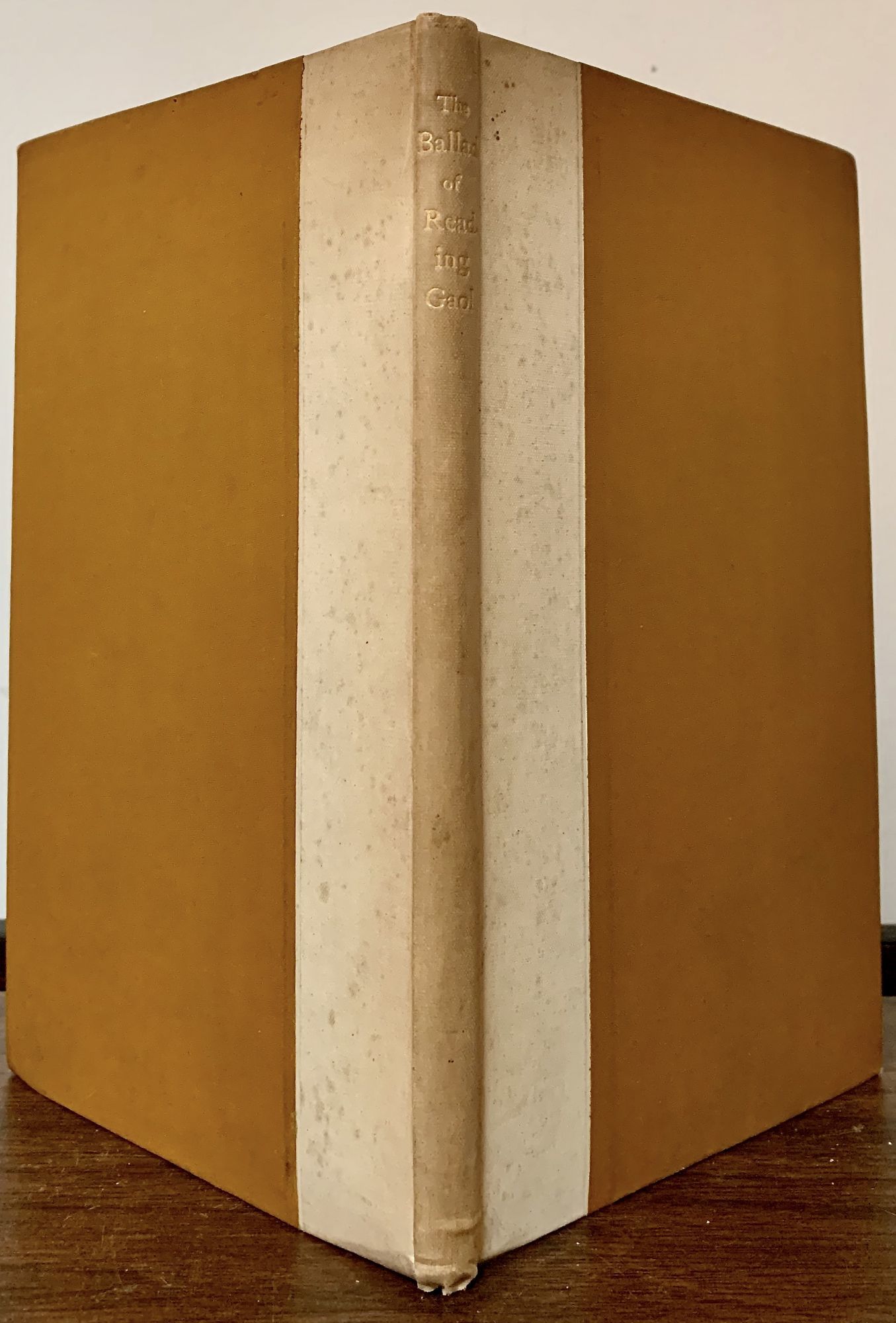 London: Leonard Smithers, 1898. Sixth Edition. Hardcover. Orig. cream cloth and light brown cloth, spine darkened. Very good. 31 pages. 23 x 14 cm. One of a 1000 copies on handmade paper. The last edition to identify the author as "C.3.,3." -- Wilde was imprisoned in cell block C, landing C, Cell 3. This narrative, a tale of Charles Thomas Woodbridge's 1896 execution at Reading for the murder of his wife. Small owner signature free front endpaper, free endpapers toned.