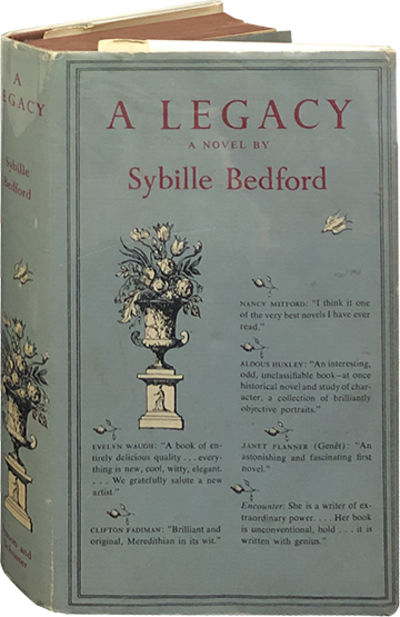 New York: Simon and Schuster, 1957. First Edition. Hardcover. Very Good/Near Fine. Very Good in a Near Fine jacket, unclipped ($3.50), lightly toned and rubbed at the surface and edges. Quarter burgundy cloth with blue paper on the boards, bumped at the corners. Square and firmly bound with a red top stain and toned pages, front hinge a bit weak, gift inscription on the half-title page. Bedford's novel about "the rich and the titled of Europe during the fifty years before the First World War.