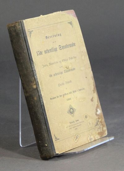 Decorah, Iowa: Der Norste Synodes Forlag, 1898. 8vo, pp. 55, [1];152, 66, 68, 82, [4]; text in Norwegian; three folding charts; black cloth-backed printed boards; each section with its own title page covering the districts of Iowa , Minnesota, East, and Pacific; boards and last 30 pages with extensive water damage and soiling, else good. A combined report of multiple synod meetings of the Norwegian Lutheran Church in America.