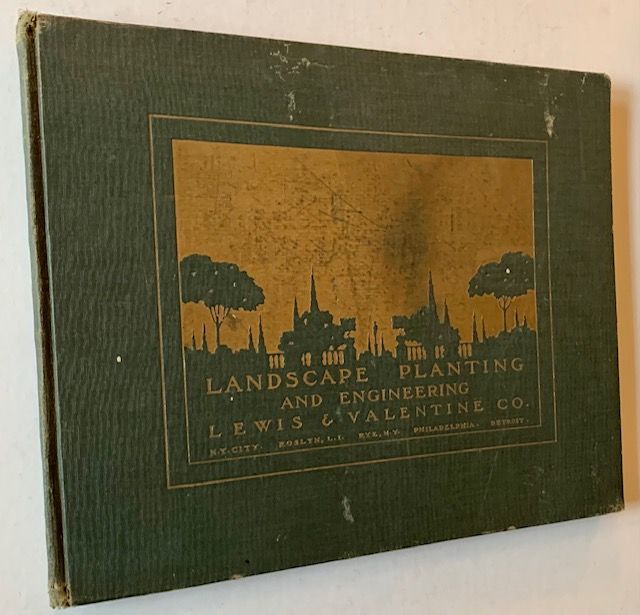 New York: Lewis & Valentine Co, 1922.  Pictorial cloth. Very Good.  Elegant, uncommon 1922 catalogue showcasing the beautiful landscape plantings of Lewis & Valentine Co., based in New York but also with branches in Rye, Boston, Detroit, Ardmore PA, Miami and Valley Stream and Roslyn Long Island. Crisp, lavish black-and-white photos showcasing some of the great estates of the day and their elaborate plantings. Oblong quarto in its dark-green cloth, with gilt-silhouetting and design to the front panel. A solid, VG copy, with light rubbing and scuffing to the front panel and light wear at the spine ends and the tips.