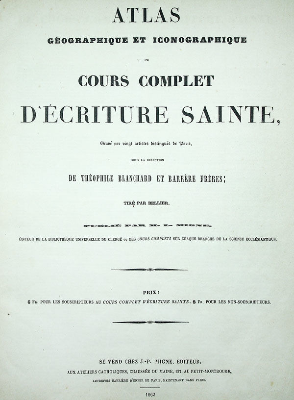 Atlas Géographique et Iconographique du Cours Complet D'Écriture Sainte, Gravé par vingt artistes distingués de Paris..