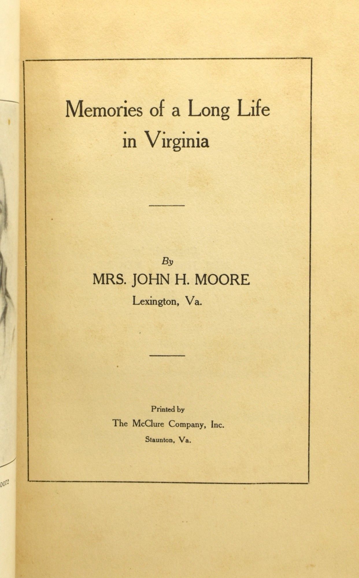 [LEXINGTON] [CIVIL WAR] MEMORIES OF A LONG LIFE IN VIRGINIA