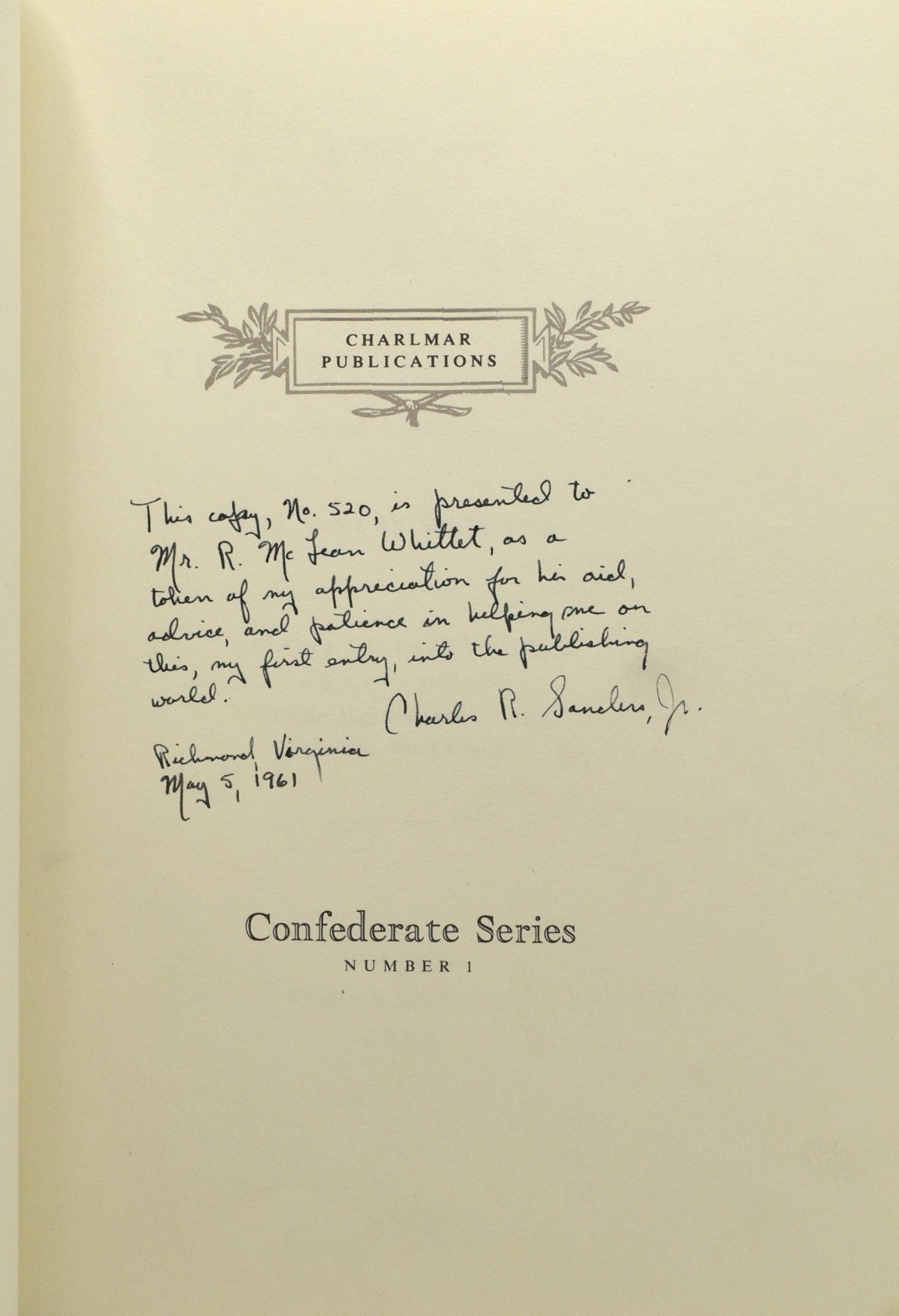 - Richmond, Virginia: Whitte & Shepperson, 1961