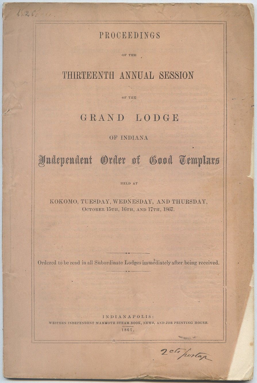 Proceedings of the Thirteenth Annual Session of the Grand Lodge of Indiana Independent Order of Good Templars Held at Kokomo