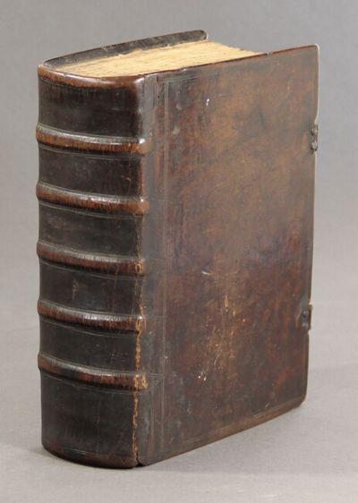 Germantown: gedruckt bey Christopher Saur, 1763. Thick 4to, 2 parts in 1 (O.T. and N.T.); pp. [4], 992; 277, [3]; collating π1-2, A-6H4, 6I6; A-2M4; text in double column; moderate toning and foxing throughout, and a bit of occasional waterstaining, several leaves with marginal tears, A3 with small loss to lower outer corner affecting the ends of 3 lines recto and verso, 4S1 with 2 minute paper flaws affecting a couple of letters, 6D2 with clean tear entering from fore-margin (no loss), 2M4 in the N.T. also with 2 minute paper flaws affecting a letter or two; full contemporary calf, unadorned spine in 6 compartments; a very nice, unrestored copy, lacking the original clasps. The first Bible printed in the Western Hemisphere was Eliot's Indian Bible of 1663. The first Bible printed in the Western Hemisphere in a European language was Christopher Saur's German Bible, published in 1743 - this being the second edition of it. It was reprinted again in 1776. "On Saur's death in 1758 he was succeeded by his only son who bore the same name. Christoph Saur the younger enlarged the business and in 1763 issued a second quarto edition (2000 copies) of the Bible" (Darlow & Moule). Wright, Early Bibles of America, pp. 44-51; Darlow & Moule 4240; Evans 9343; Hildeburn, C.R. Pennsylvania, 1877; Bötte & Tannhof 269; O'Callaghan, p. 25; Sabin 5192.
