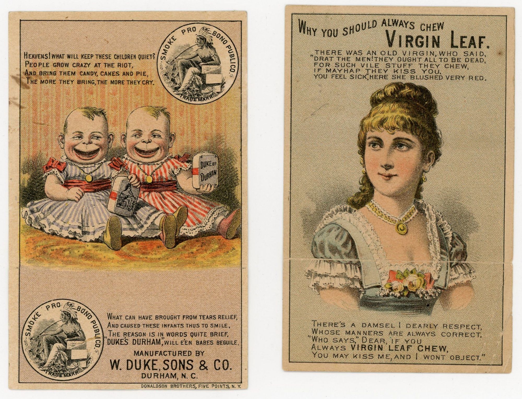 7 metamorphic advertising trade cards promoting the use of tobacco products