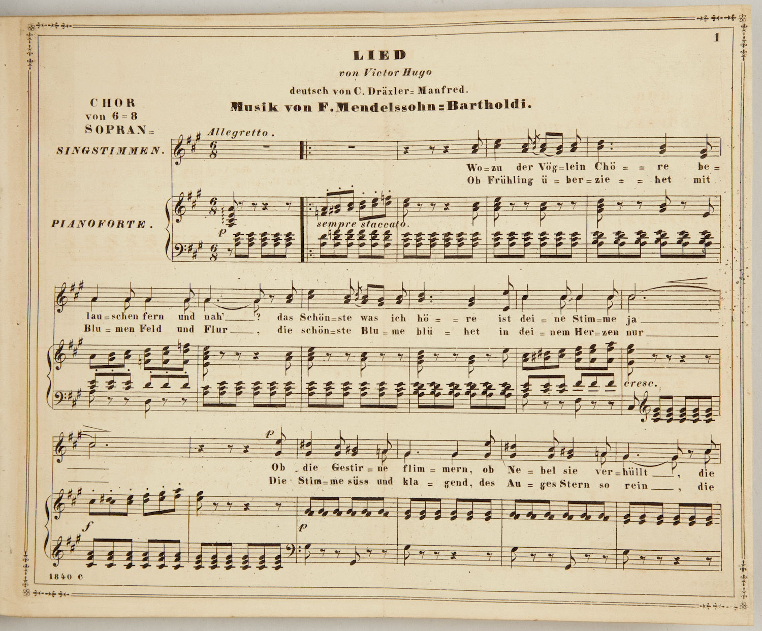- Mendelssohn, Felix 1809-1847: Lied by Victor Hugo deutsch von C. Dräxler-Manfred. 2 pages on 1 plate