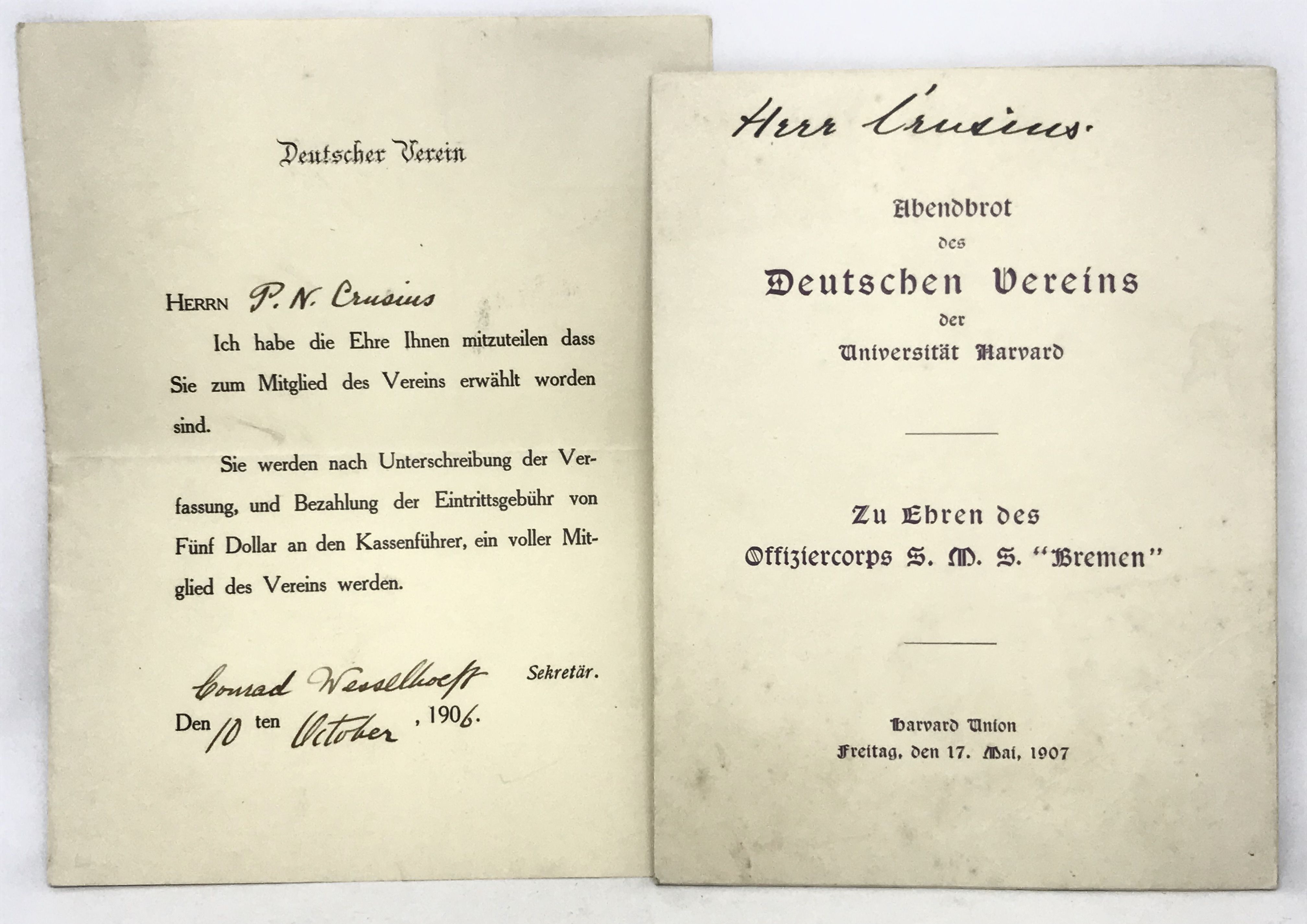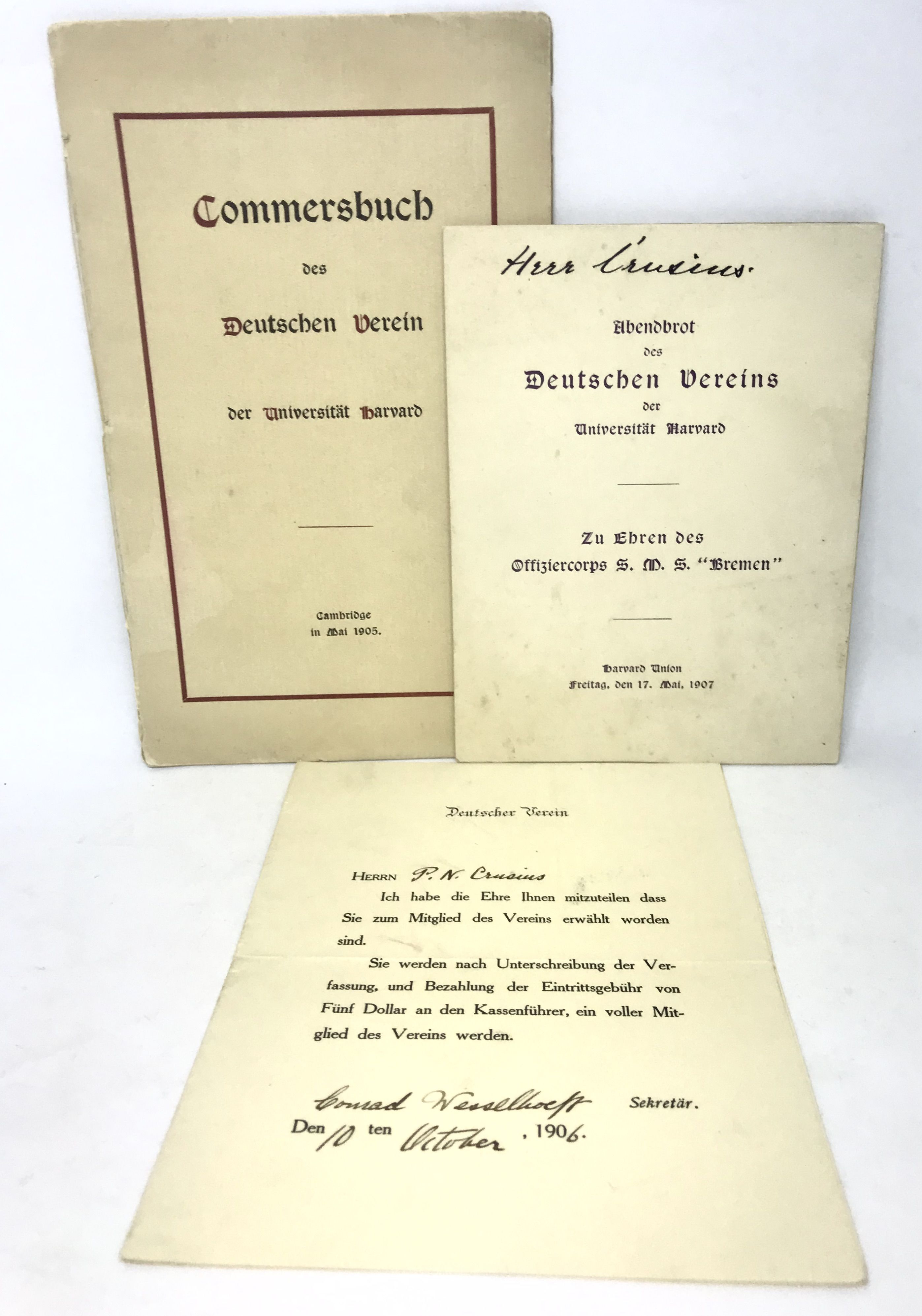 1905-1907. A group of three original items related to the Deutscher Verein (German Association) at Harvard University: