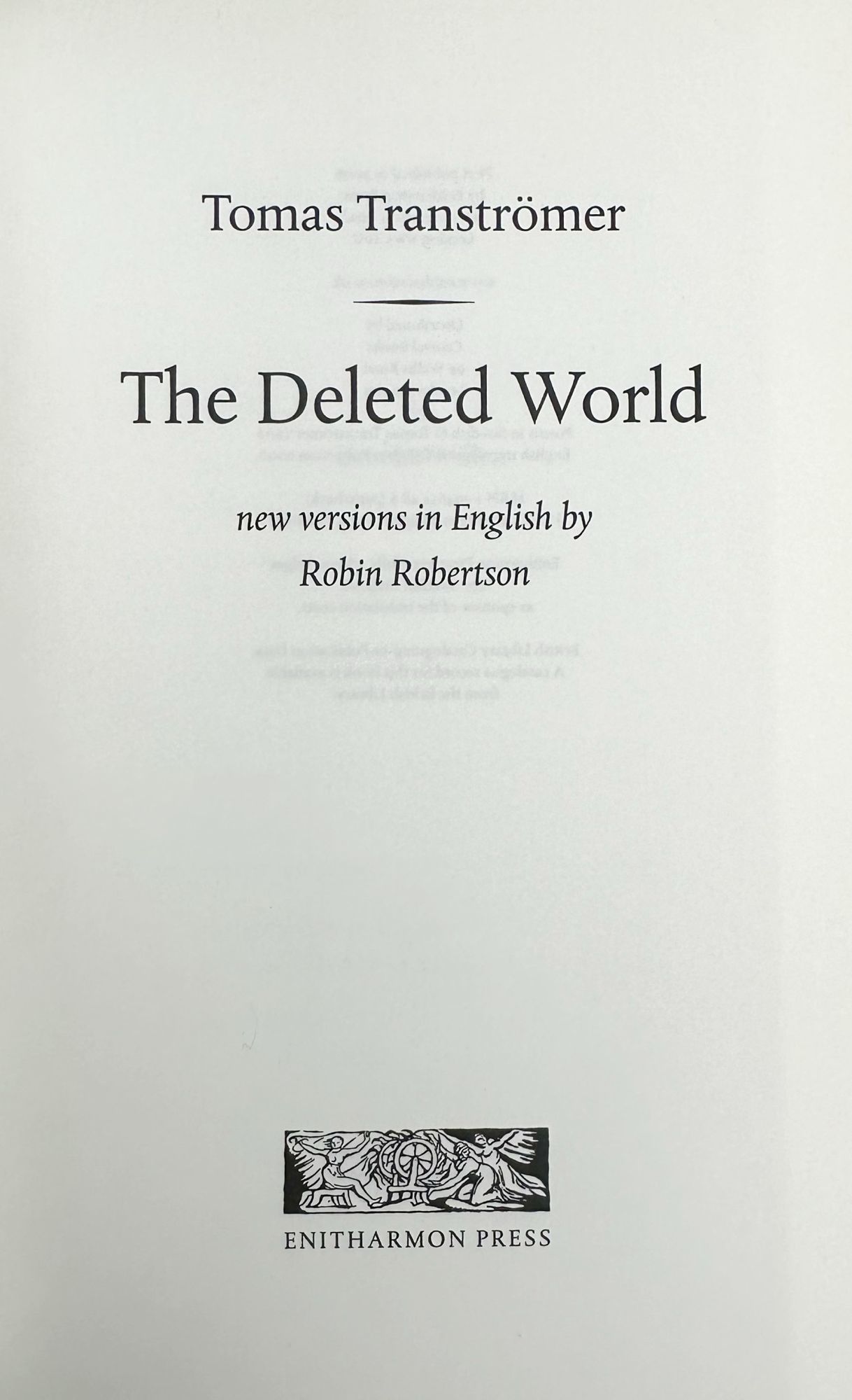 The Deleted World. [By] Tomas Transtromer. New versions in English by Robin Robertson