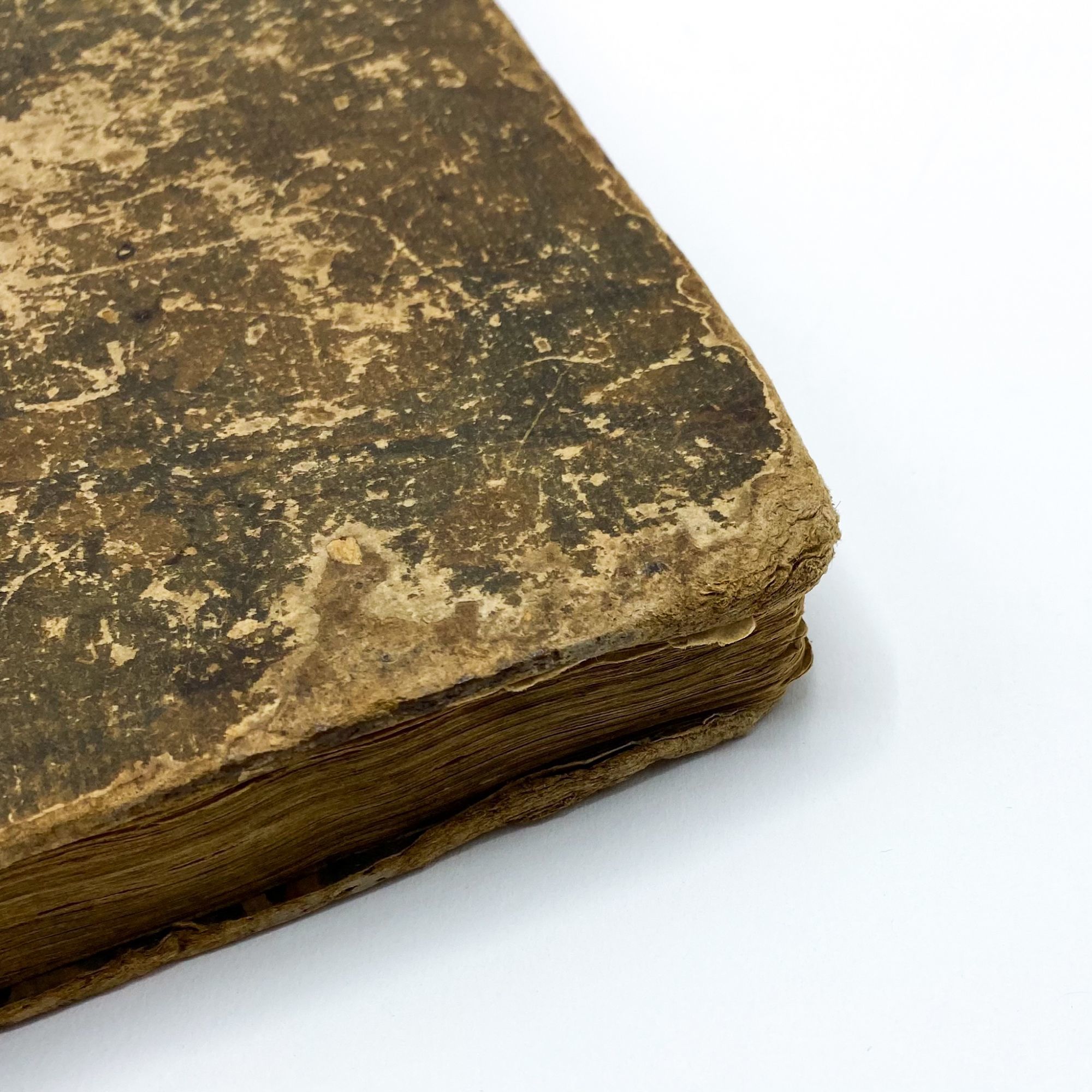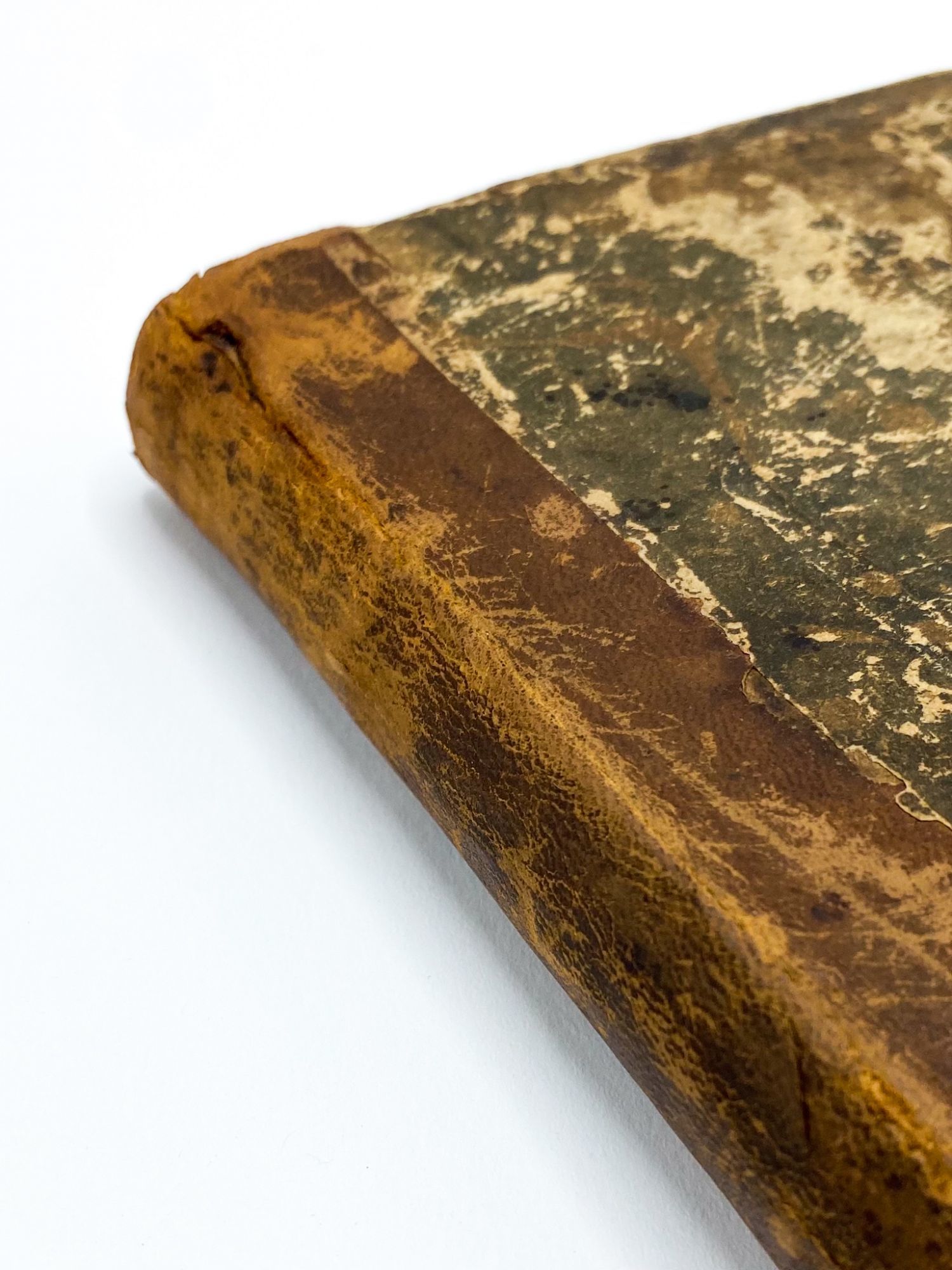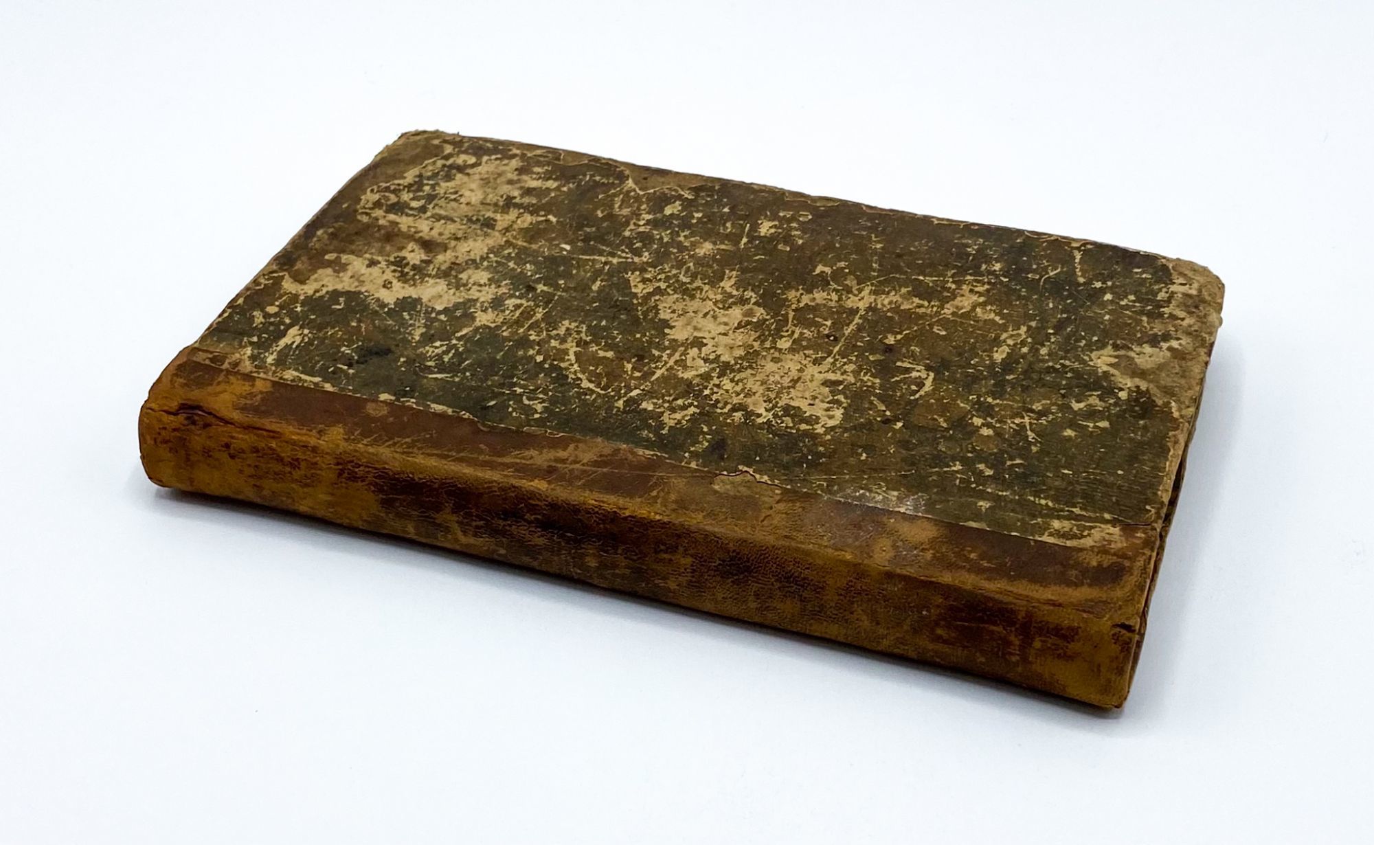 Leominster, Massachusetts: Adams & Wilder, 1802. Good plus.. Second revised edition of one of the most popular mathematical textbooks in the early United States, with extensive contemporary figuring. "Judged by the number of editions produced, [THE SCHOLAR'S ARITHMETIC] attained second place in popularity among the arithmetics published in America in the period from 1800 to 1825," says historian Louis C. Karpinski (133). He further notes that, though Daniel Adams included blanks under the problems for readers to do their own sums, "thrifty New Englanders continued to use" the text, even after past pupils filled them with figuring (Karpinski, 134). This copy is a prime example of a student using all the space afforded to them to work out the solutions to copious math problems. One can only hope they were rewarded with a good grade for their stylish handwriting, as the very least; this cataloguer cannot speak to the accuracy of their sums. Quarto. 8.75'' x 5''. Original sheepskin-backed marbled boards. Various charts throughout. 216 pages, collated complete. Contemporary ownership inscription to front flyleaf, "Isaac Farley his / property bought January 12 / 1804 of Leonard Whiting price 5/3 / the twentieth year of his age." Contemporary owner name to verso of title page, "Thomas J Dons / Book." Extensive contemporary mathematical notation. Binding variously scuffed, with edgewear and loss of marbled paper to rear. Front hinge carefully reinforced, a couple subtle repairs to verso of front flyleaf; two fly leaves renewed, one to front and one to rear. Leaves with some soiling and scattered foxing. Sound overall.